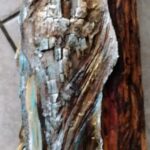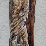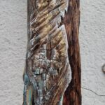 Rzeźba wykonana w dość grubym drewnie ,pięknym samym w sobie ,z drzewa po uderzaniu pioruna.(Historia drzewa jest ciekawa ,to było jego trzecie spotkanie z piorunem )