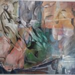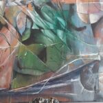 Obraz Abstrakcyjny wykonany w technice olejnej na podobraziu płóciennym .
