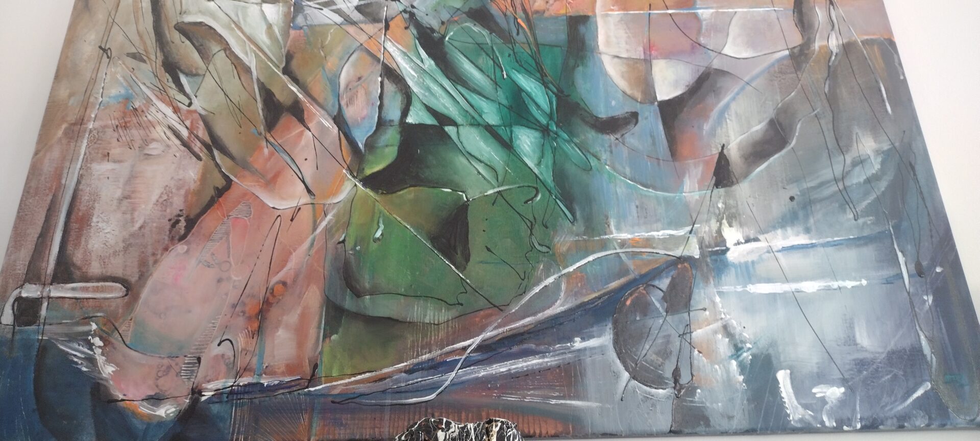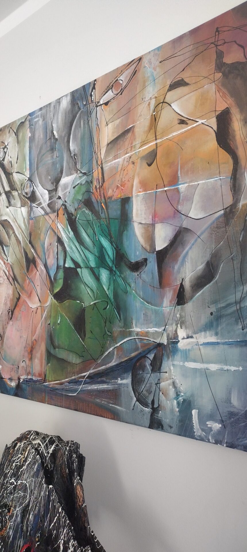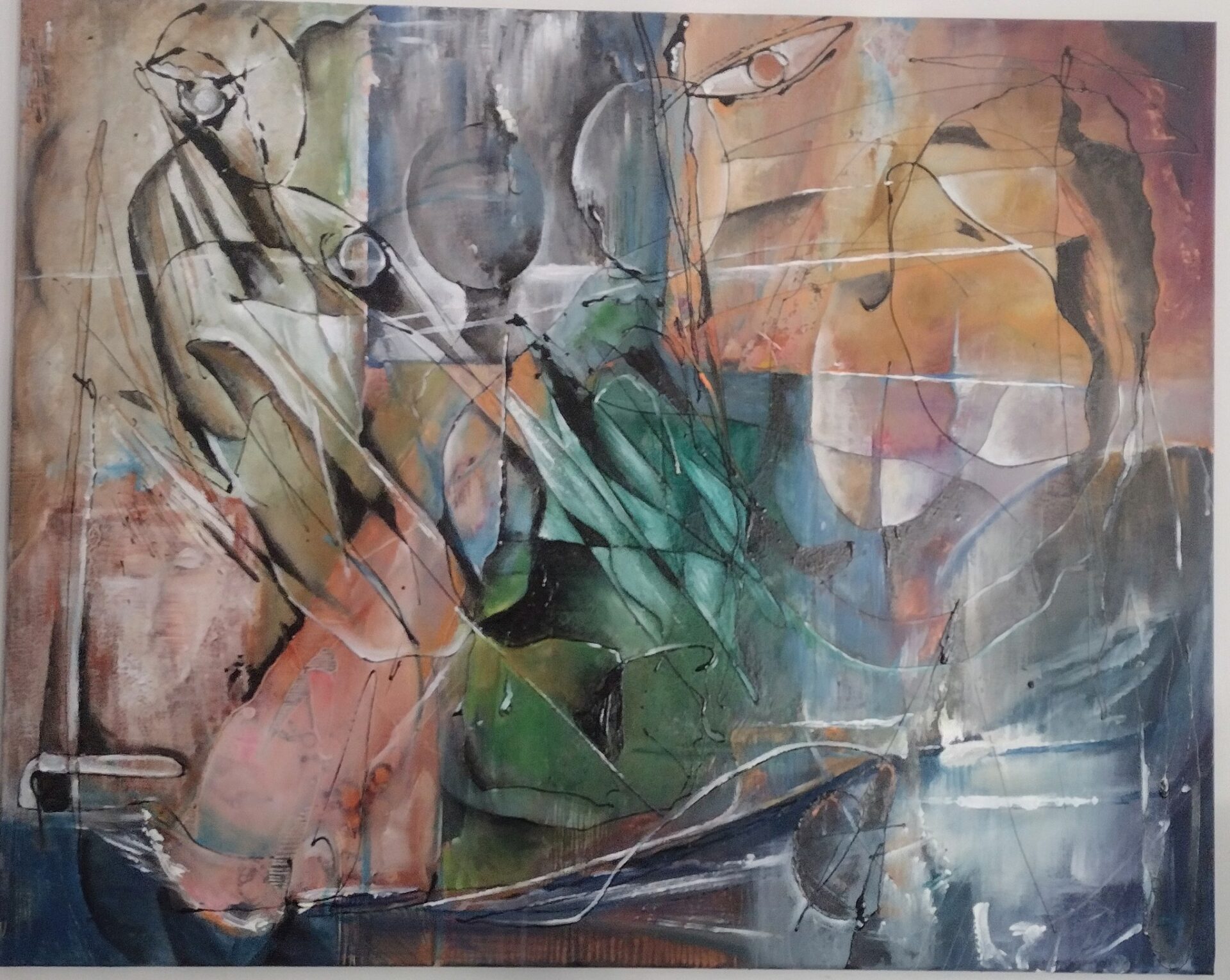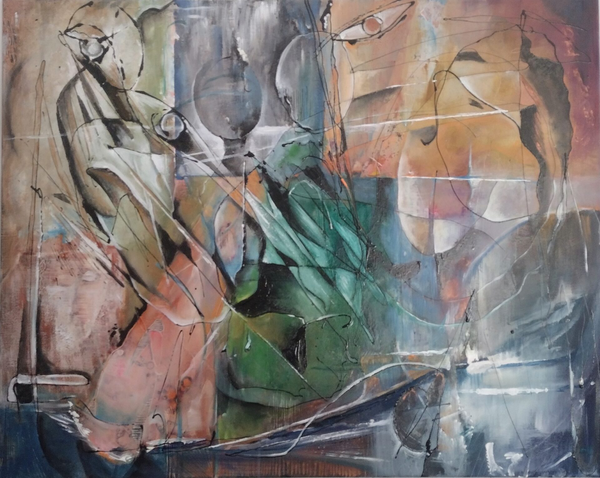 Obraz Abstrakcyjny wykonany w technice olejnej na podobraziu płóciennym .