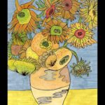 Tu kupujesz pliki cyfrowe do samodzielnego druku.”SŁONECZNIKI ZEN” – autorski, sygnowany rysunek. Oryginał rysowany kredkami i markerami.