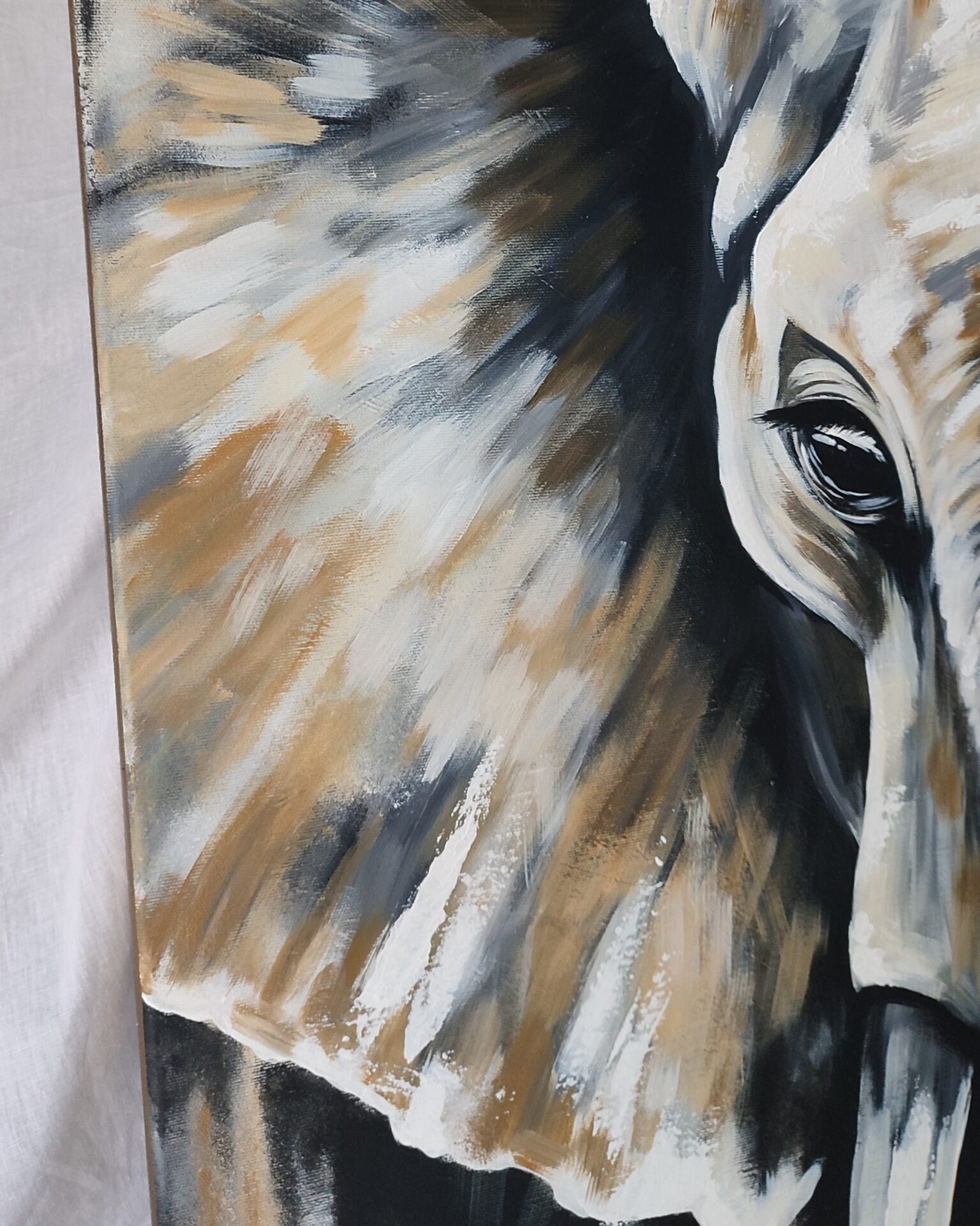 Widoczne pociągnięcia pędzlem. Abstrakcja w tle.