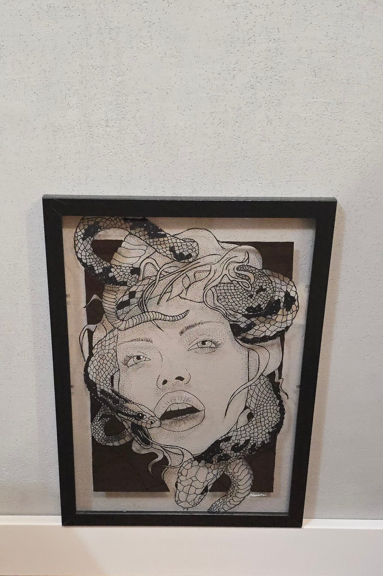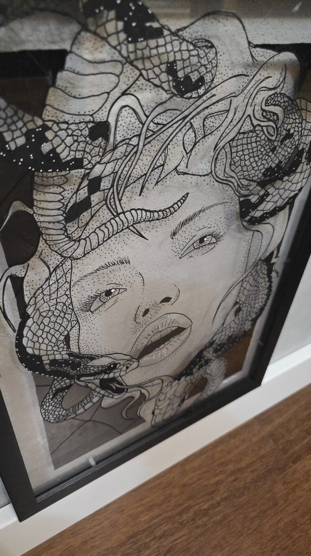Warstwa rysunkowa kredką akwarelową+ 2 warstwy plexi akrylowe.