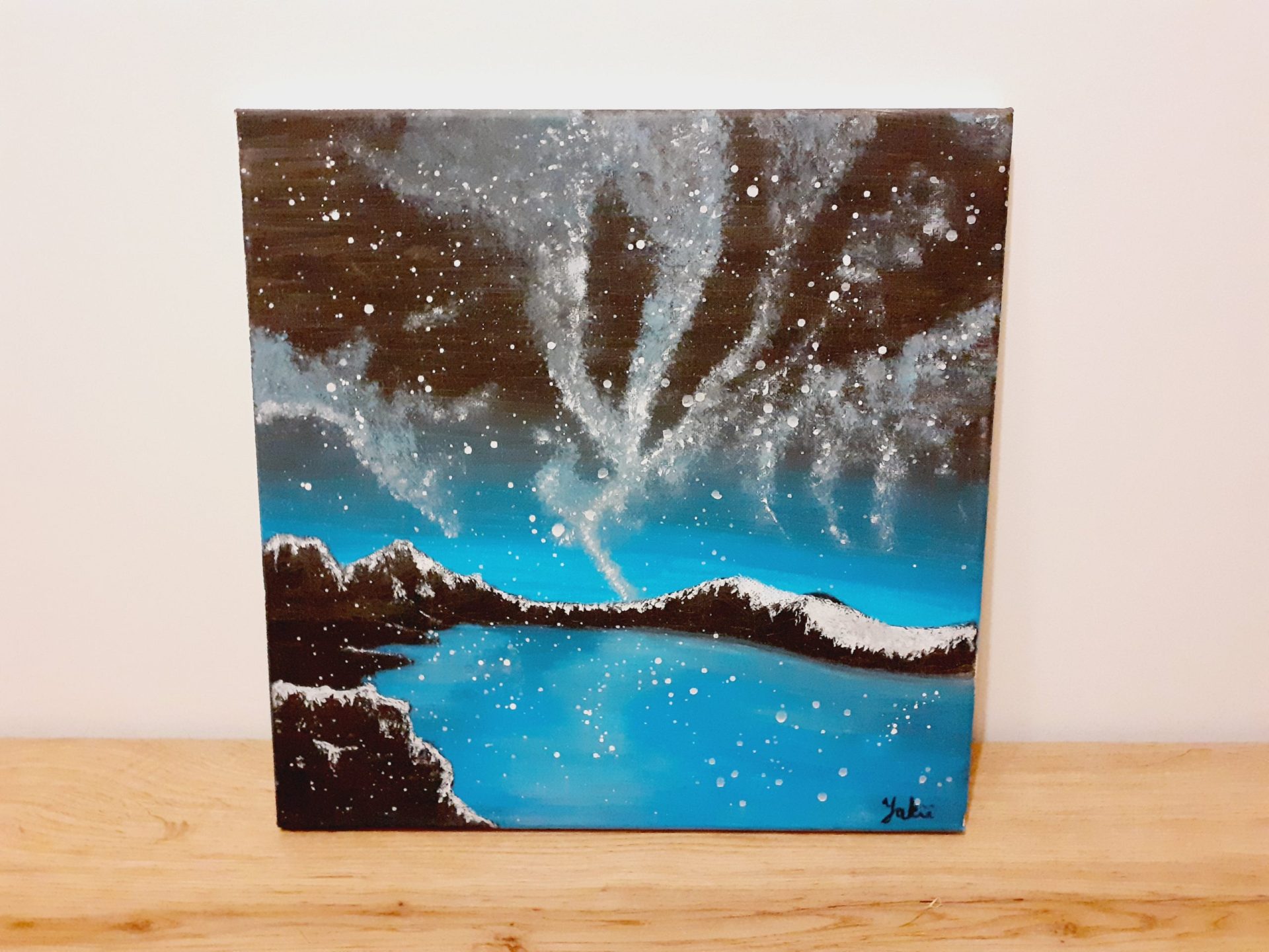 Obraz wykonany ręcznie za pomocą farb akrylowych na płótnie o wymiarach 30cm x 30cm