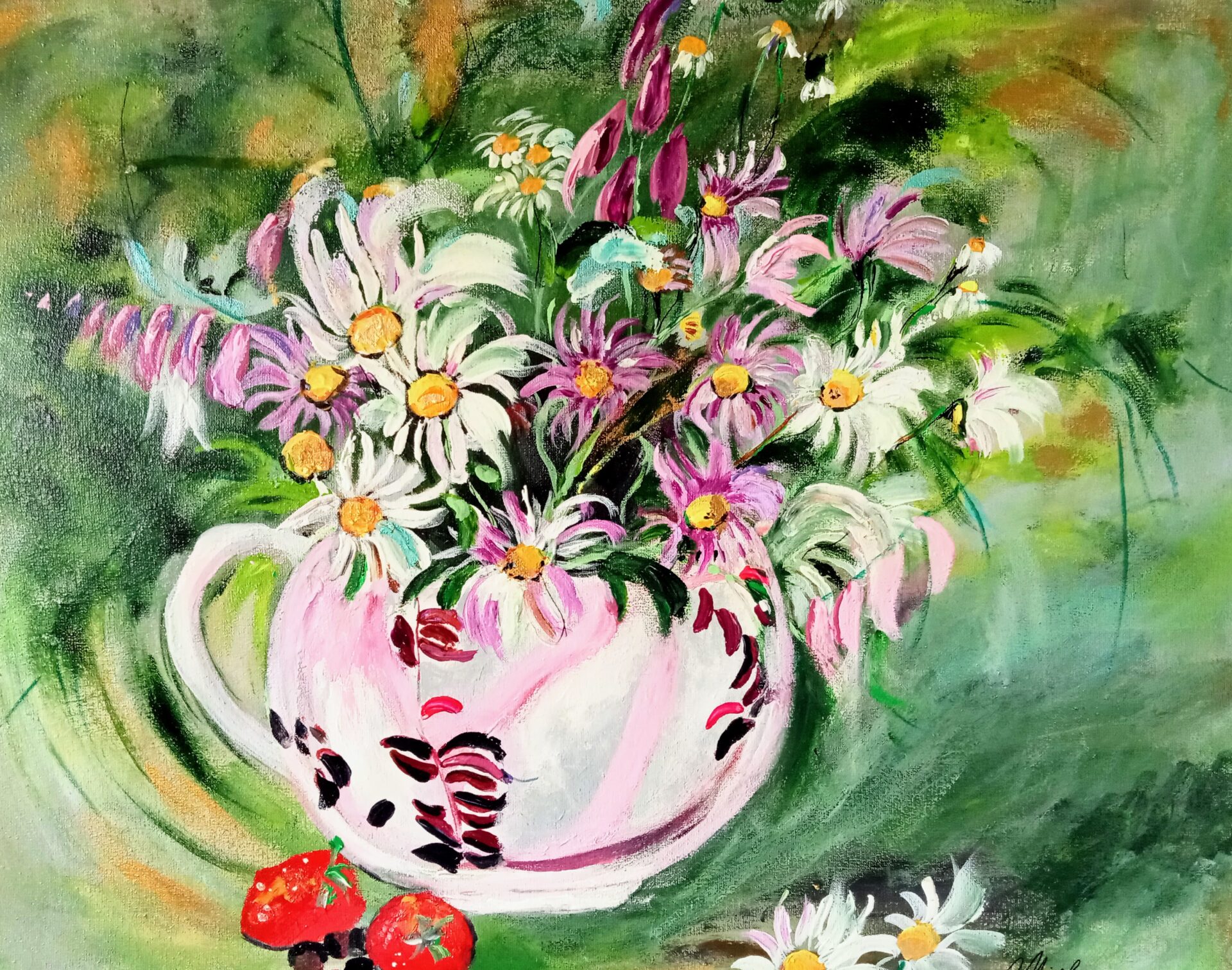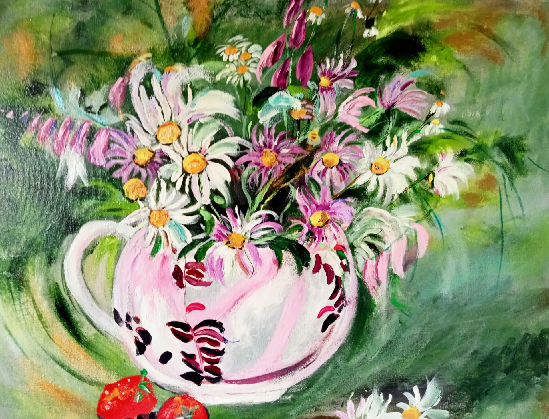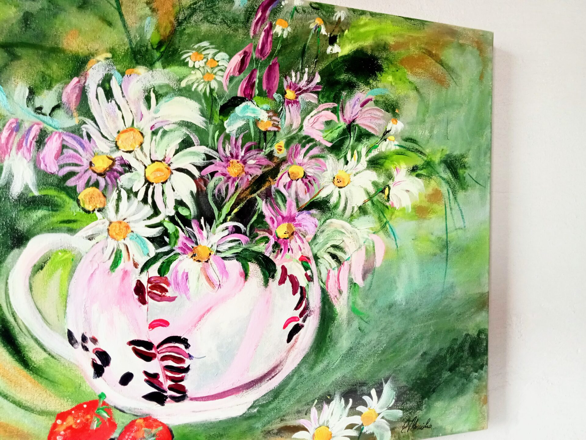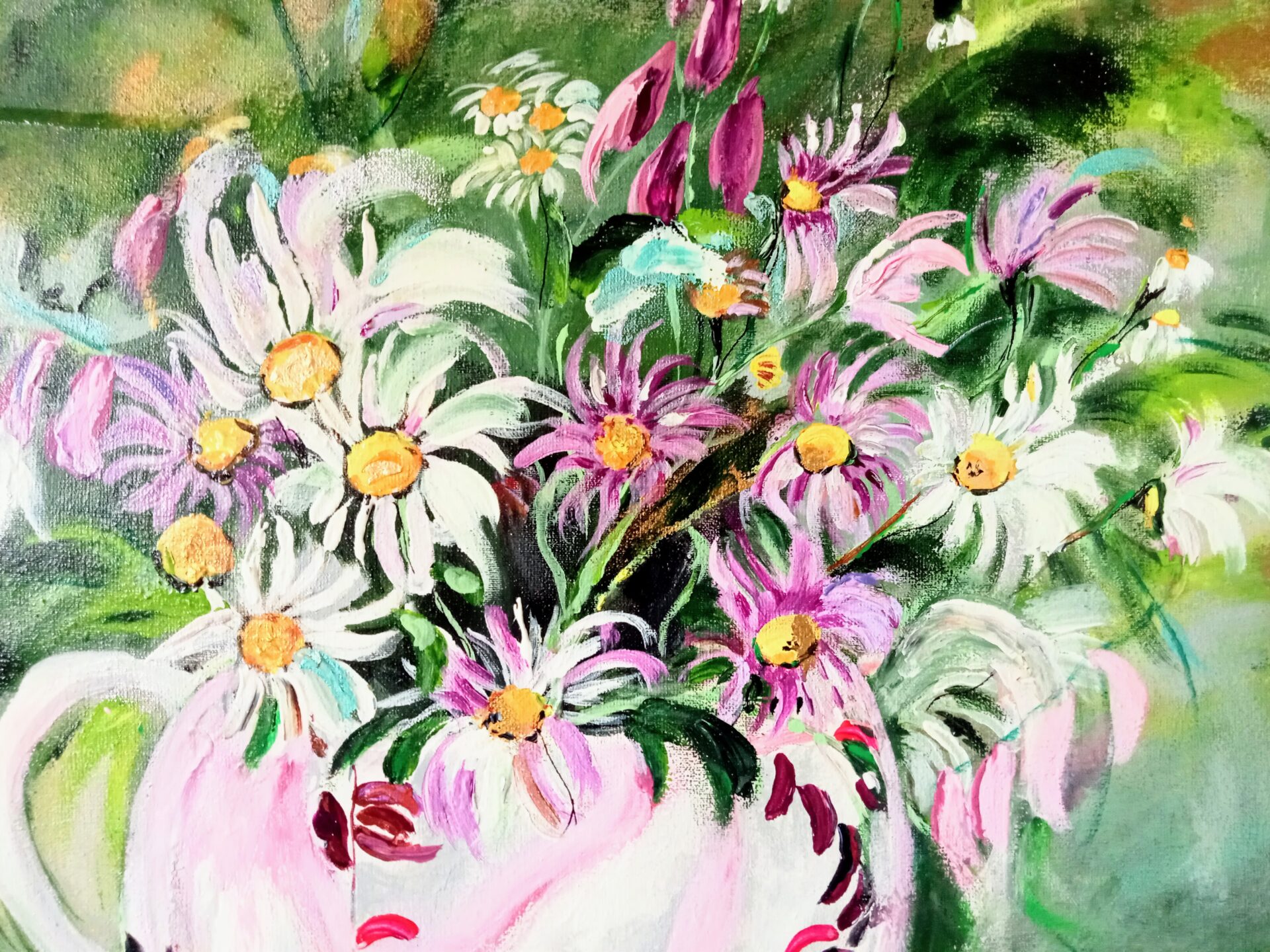 Obraz akrylowy ręcznie malowany na płótnie naciągniętym na bjetram drewniany.
