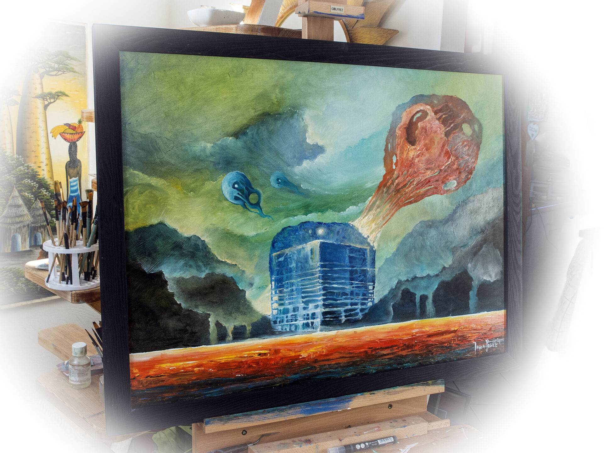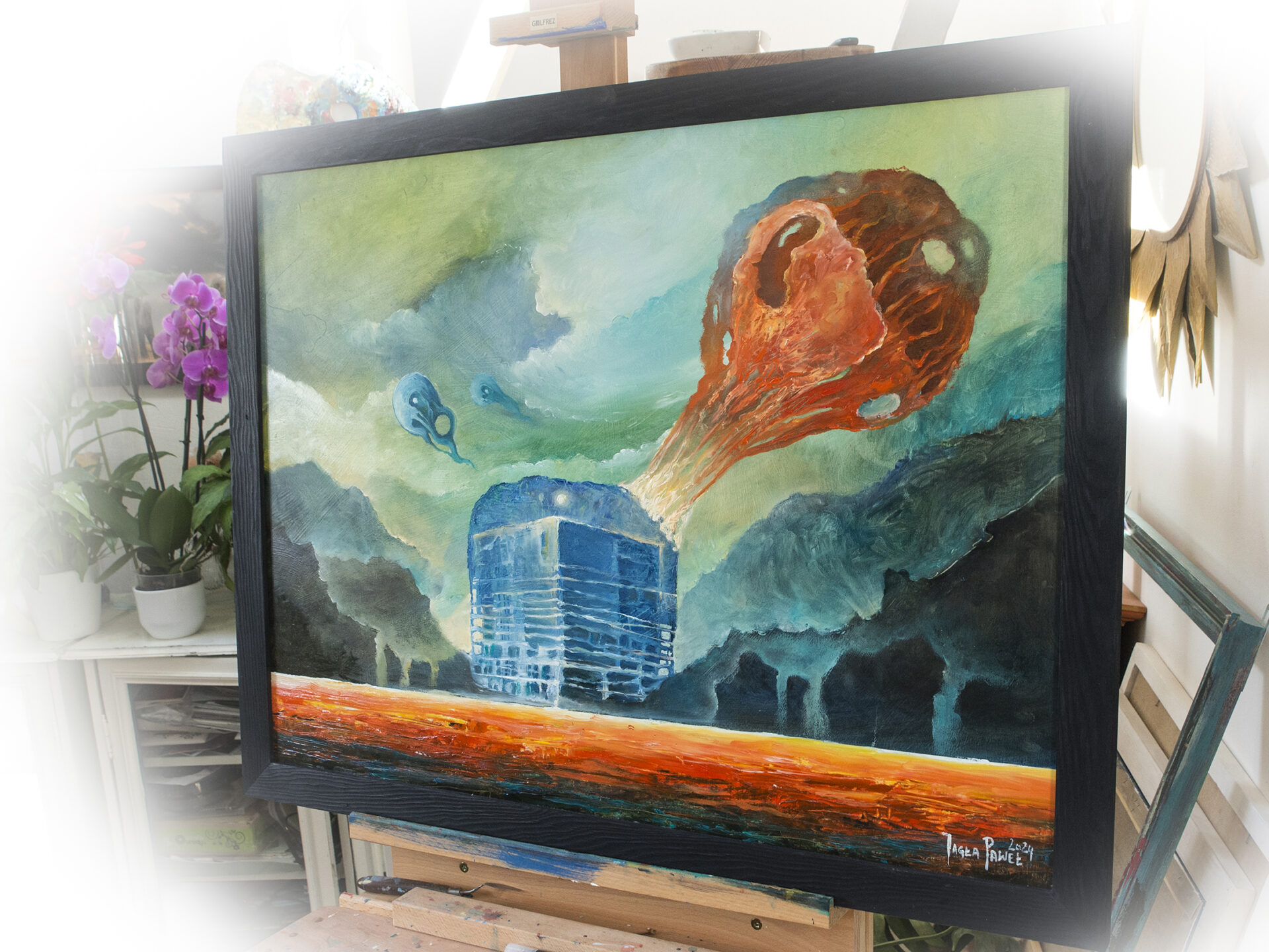 Praca autorska 80x60cm olejne farby Talens Van Gogh na płycie mdf 9mm i w drewnianej , prostej ramie czarnej…Praca sygnowana posiada certyfikat autentyczności…