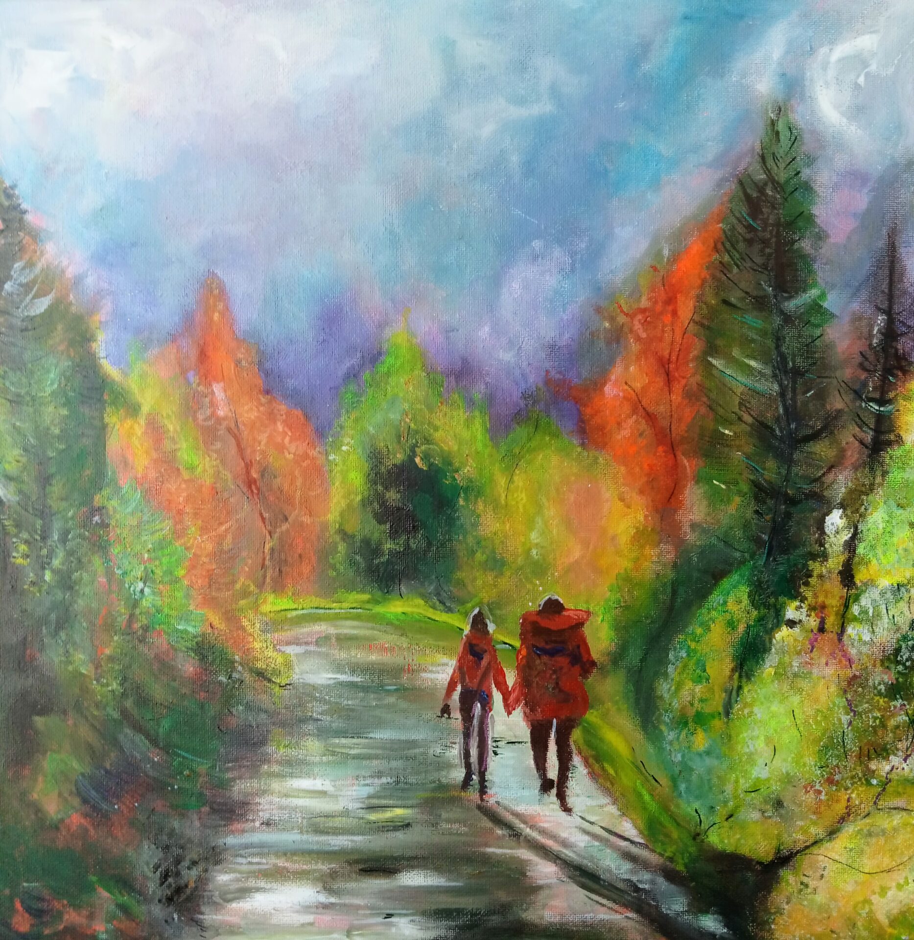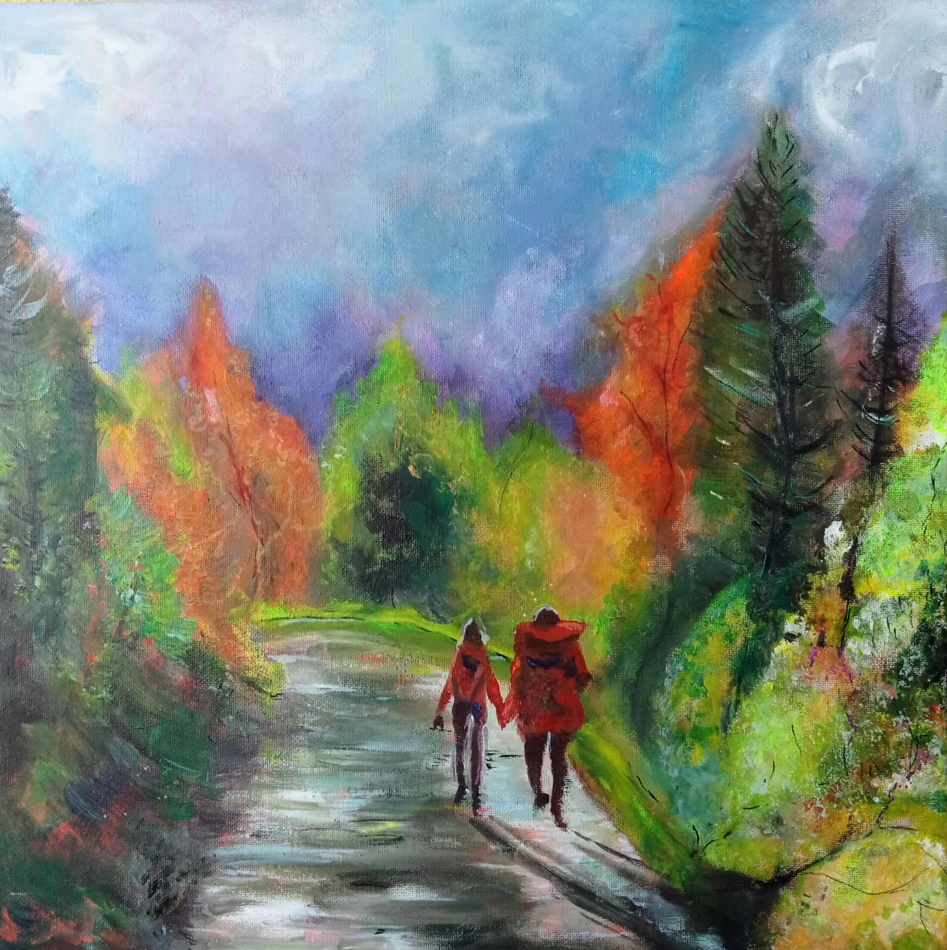 Obraz akrylowy ręcznie malowany na płótnie naciągniętym na bjetram drewniany.