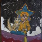 Rysunek techniką mieszaną akryl i pastele. Ilustracja przedstawia postać z gry Spiritfarer, która ukazuje jak ulotne jest życie i przedstawia ciągłą podróż. Rysunek jest typowym rysunkiem game-artowym. Rozmiar A3 oraz zdjęcie wykonane w świetle dziennym. Możliwość oprawienia w antyramę.