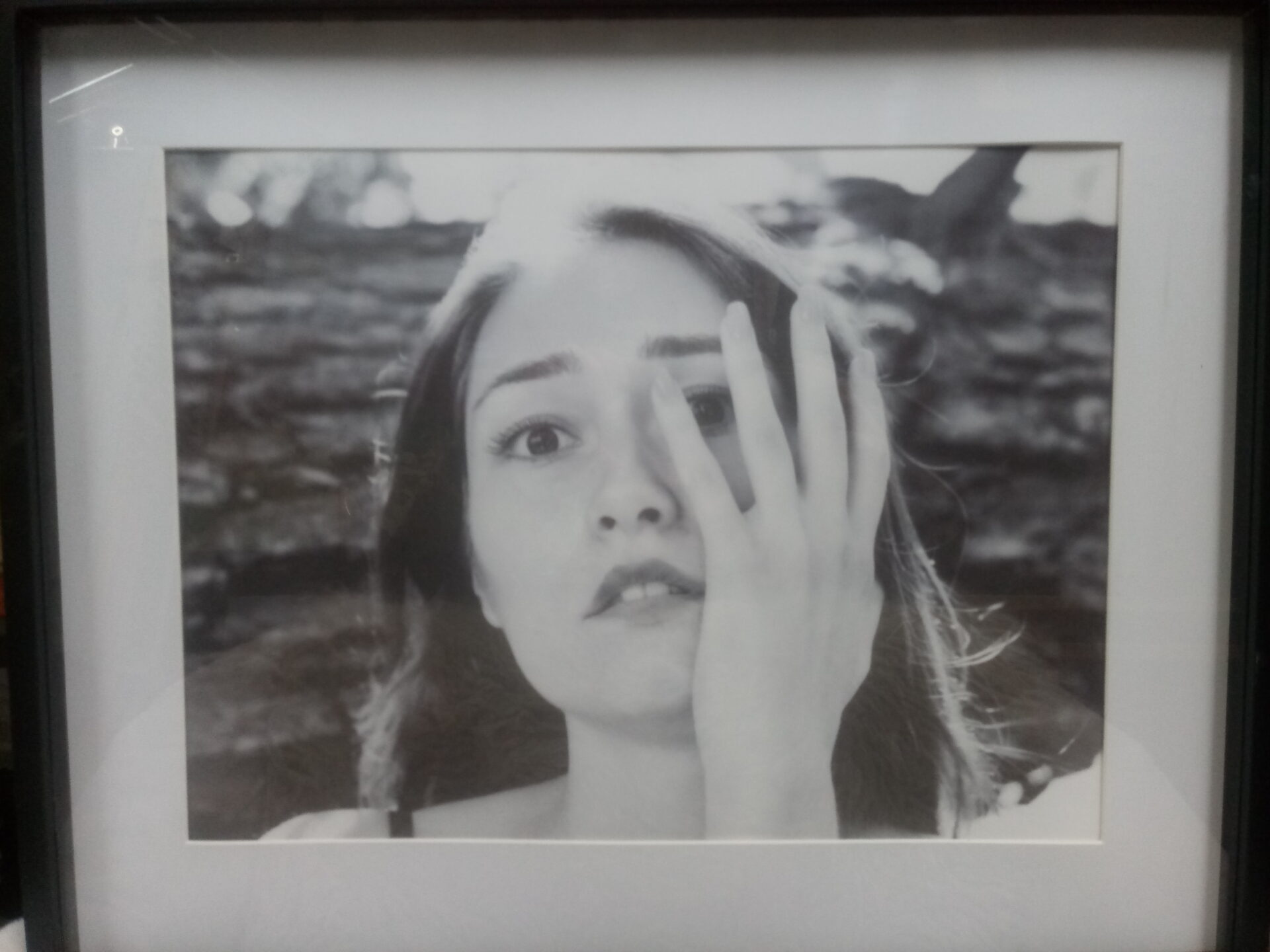 Fotografia Spojrzenie.Fotografia czarno biala.Praca autorska.Fotografia oprawiona ze szklem.Rama drewniana.55/50cm.Studium modelki.Praca inspirowana surrealizmem.