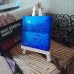 Obrazek na płótnie, malowany farbami akrylowymi. Oryginalna ozdoba pomieszczenia o wymiarach 13cm/8cm wraz ze sztaluga, samo płótno 7cm/7cm. Serdecznie polecam.