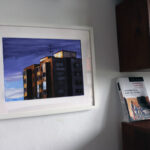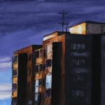 Obraz akwarelowy z dodatkiem gwaszu z roku 2024, namalowany na podstawie autorskiej fotografii. Obraz należy do cyklu Stegny, jednego z najstarszych w mojej twórczości. Cykl ten związany jest z moim Miejscem Zamieszkania. Taki tytuł nosiła moja druga wystawa z 2007 r. Był to malarski reportaż z najbliższej okolicy, miejsca codziennych obserwacji malarskich, często notowanych intuicyjnie, później dokumentowanych fotograficznie.Obraz na papierze jest formą szkicu, notatką przed namalowaniem większego obrazu sztalugowego.