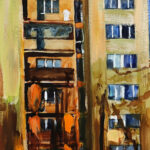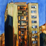 Obraz akwarelowy z dodatkiem gwaszu z roku 2024. Obraz należy do jednego z najstarszych cykli w mojej twórczości pt.: Stegny. Cykl ten związany jest z moim Miejscem Zamieszkania. Taki tytuł nosiła moja druga wystawa z 2007 r. Był to malarski reportaż z najbliższej okolicy, miejsca codziennych obserwacji malarskich, często notowanych intuicyjnie, później dokumentowanych fotograficznie.