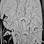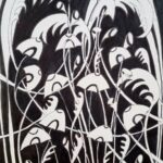 Czarno-biała grafika przedstawia kwiaty i roślinność w abstrakcyjnych kształtach, zainspirowanych letnią łąką zakwitłą rumiankiem i stokrotkami. Kwiaty mają nieregularne formy, przypominające geometryczne figury, a ich płatki oraz łodygi stworzą jednolity obraz, ale wyrazistymi liniami. Kontury traw i liści, które płynnie przechodzą w tło, nadając kompozycji lekkości. Gra świateł i cieni podkreśla kontrast między strukturą roślin a przestrzenią, w której się znajdują, tworząc nowoczesny i minimalistyczny efekt. Idealna dekoracja do wnętrz w stylu skandynawskim, nowoczesnym lub industrialnym. Obraz zatrzymuje ten szczególny moment, gdy oślepione letnim słońcem oczy tworzą pod zamkniętymi powiekami abstrakcyjny film tworzony z ostatniego zarejestrowanego momentu.