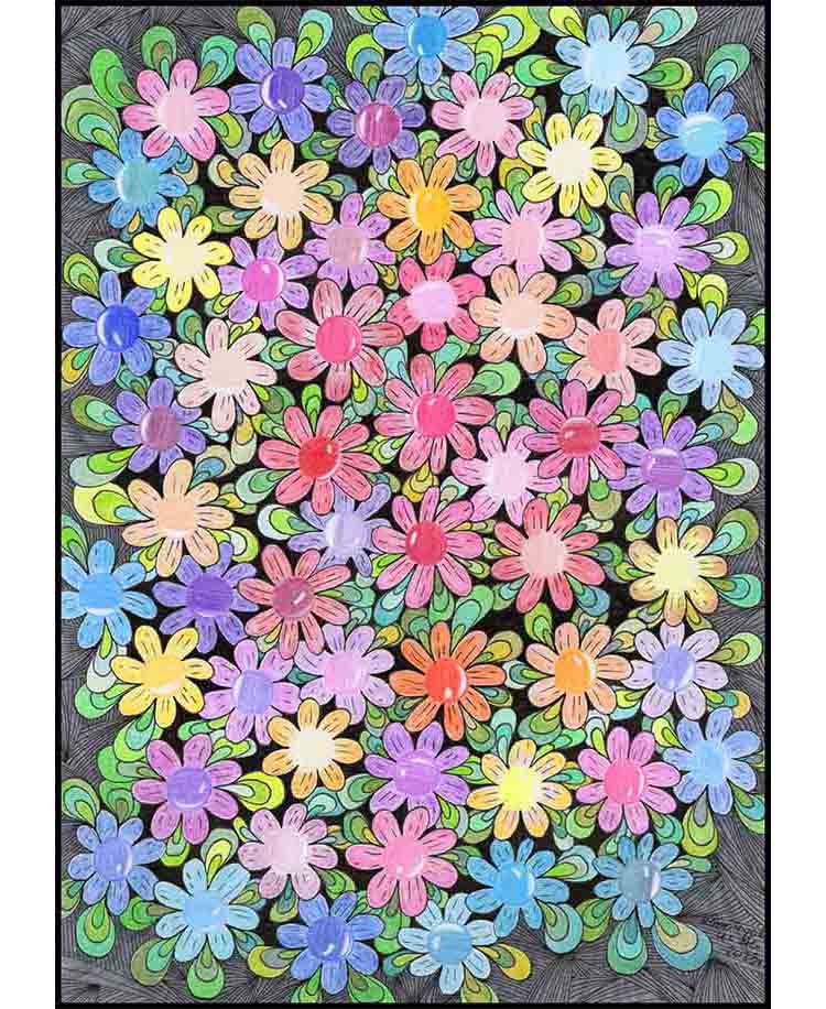 Oryginał rysowany kredkami i markerami.