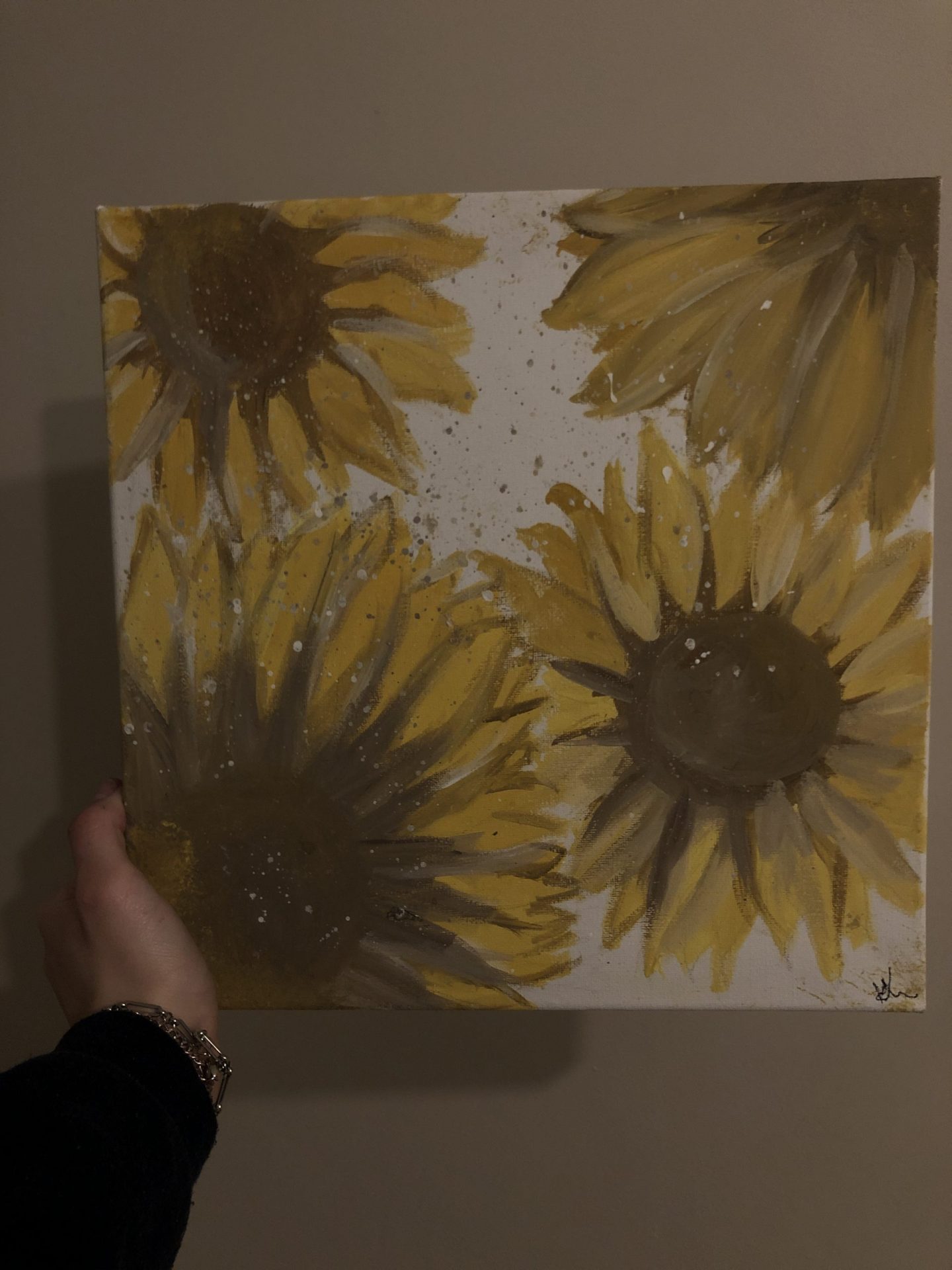 Słoneczniki, które komponują się niesamowicie w dni pełne słońca. Będzie pieknie wyglądać, może i u ciebie w domu? Jeśli jesteś zainteresowany moimi malunkami, napisz do mnie lub przejrzyj mój profil na instagramie! Zabieram się również za inne plastyczne czynności i jeśli chciałbys/as żebym stworzyła cos dla ciebie, daj mi znac!!