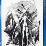 Praca w tuszu rysunek z 1989r na papierze talensa nie oprawiona.Praca brała udział w wystawie indywidualnej w 1990r w Bibliotece Raczyńskich w Poznaniu.Cena dotyczy reprodukcji na papierze fotograficznym 30 x 20 cm .Każda praca jest sygnowana z tyłu.
