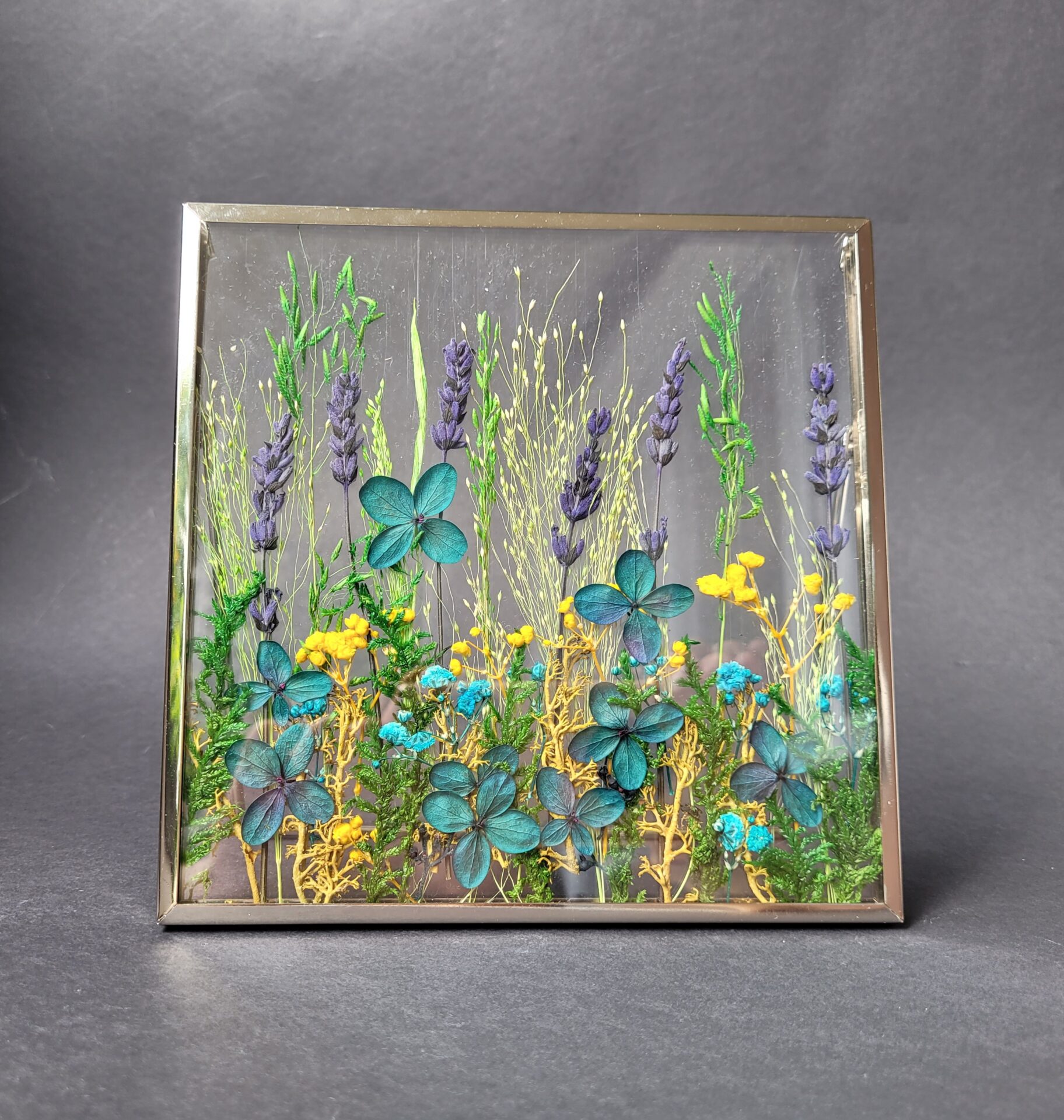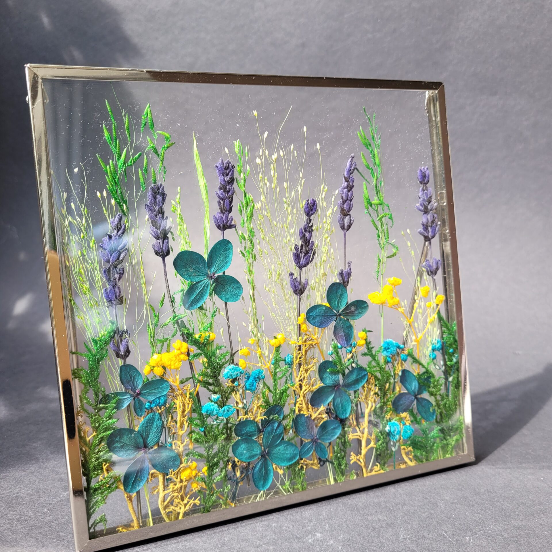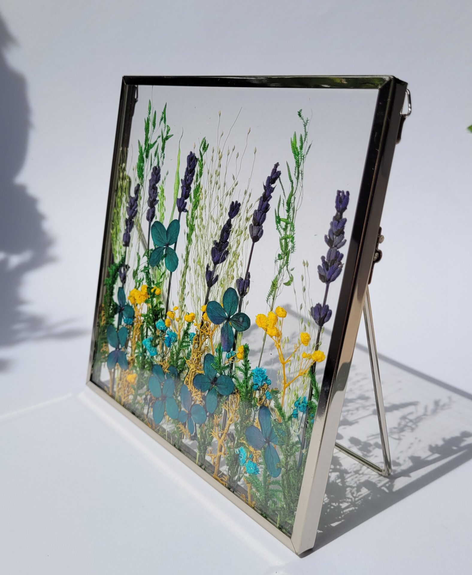 Oryginalny witraż dekoracyjny z suszonymi kwiatami to wyjątkowe dzieło sztuki ręcznie wykonane z dbałością o każdy detal. Unikalny wzór i subtelne piękno suszonych kwiatów tworzą ciepłą i naturalną atmosferę, doskonale dopełniając wystrój wnętrza. Ramkę można zarówno postawić na stole, jak i powiesić na ścianie, dodając przestrzeni elegancji i przytulności. Idealny jako prezent lub stylowy element dekoracyjny do Twojego domu!
