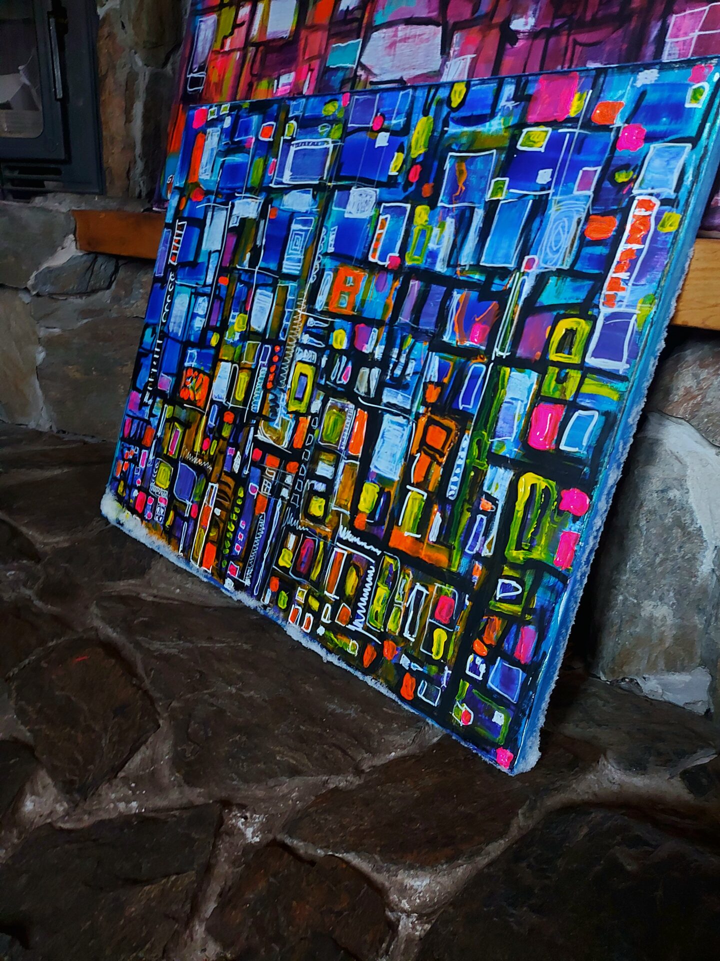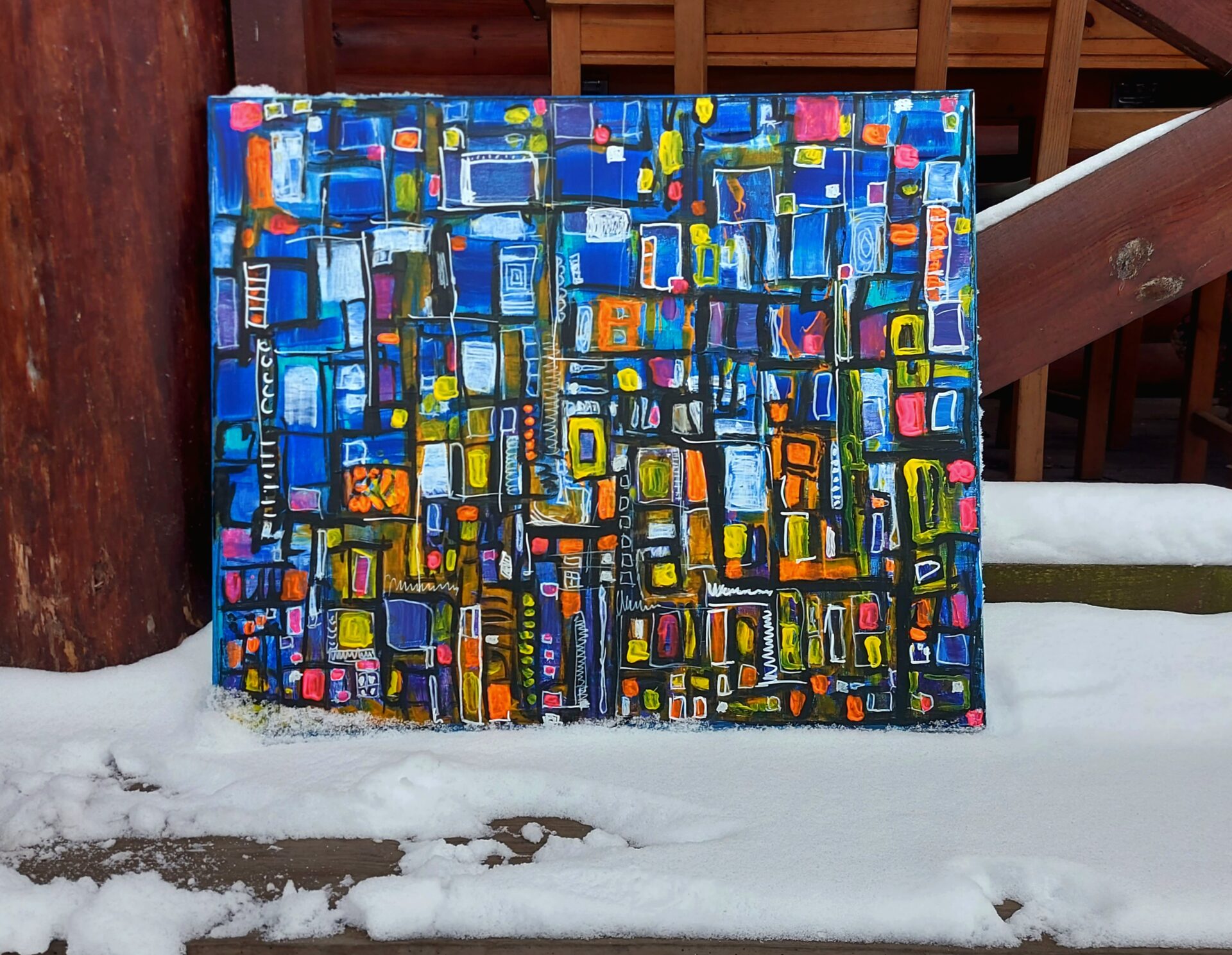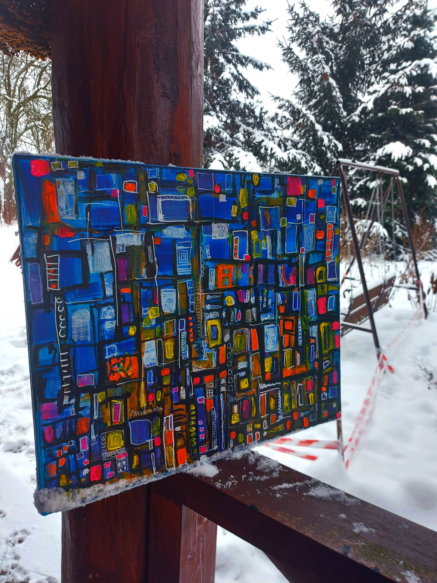 Miasto z lotu ptaka, wibrujące światła, mnóstwo świateł…Znaczenie zagubione między słowami. Relacja. Coś ważnego, a jednak NIEwypowiedzianego. Gwar. Tempo. Tętno. Wielkie miasto i mnóstwo świateł…O tym jest ten obraz.
