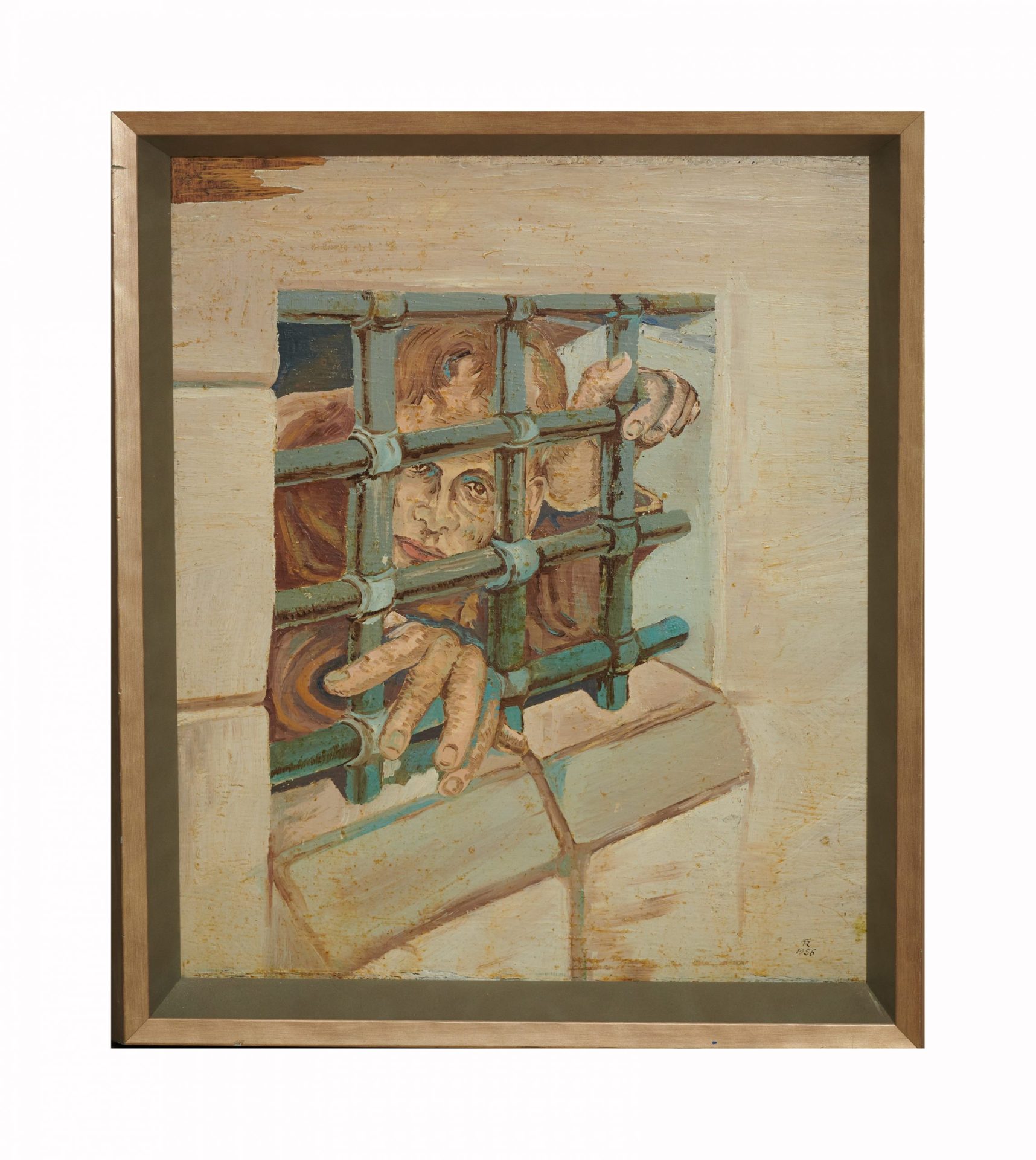 Sygnowany p.d. „FR 1956”. Obraz posiada odprysk w lewym górnym rogu.