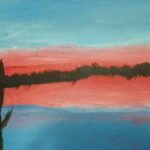 Obraz przedstawiający uroczysko Święte Ługi. Tuż przed zachodem słońca. Obraz został namalowany farbami akrylowymi.