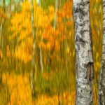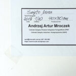 Święto lasu to fotografia zrobiona z jednego zdjęcia cyfrowego na którym zarówno pnie brzóz jak i tło z młodymi brzózkami było ostre. Ze względu na ciepłe barwy jesiennego listowia obraz był przyjemny, można by powiedzieć radosny i to mi nasunęło pomysł, żeby ten nastrój powiększyć. Zacząłem majstrować w programie Capture One, odrealniłem tło i przyszedł mi wtedy pomysł na tytuł tej fotografii: Święto lasu. A jak święto to zabawa i postanowiłem wprawić w ruch młode brzózki i na koniec powstała taka fotografia, którą tu przedstawiam. Oryginalny, pierwotny obraz , od którego wszystkie przemiany się zaczęły, dodaję w załączniku. Ponieważ nie potrafiłbym tego procesu powtórzyć na innym zdjęciu, więc z tego względu jest ona jedyna w swoim rodzaju. Oprawiłem ją w kremowe passe-partou oraz cienką czarną ramę + cienkie szkło – powiesiłem na ścianie w pokoju. Limit 1/5.