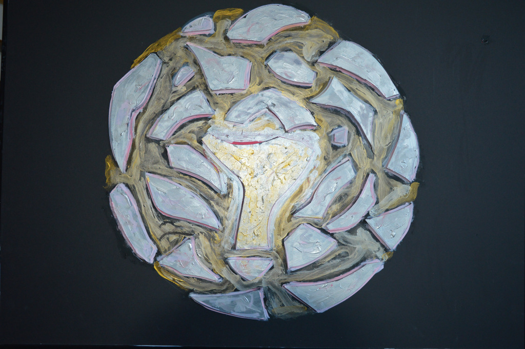 Święty Graał. Z serii Teozofia -. Malowany obraz farbami akrylowymi na piance 5 mm i z naklejeniami też 5 mm. Antyrama 100 x 70 cm