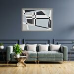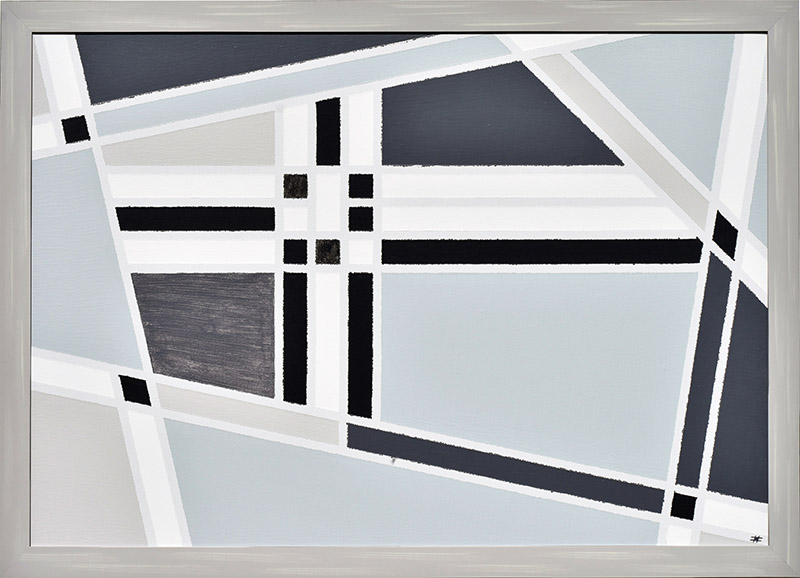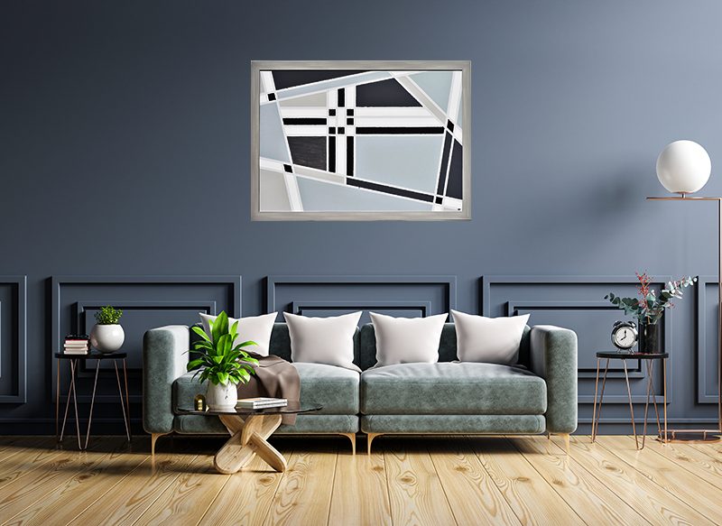Obrazy są malowane akrylami na płótnie bawełnianym o wymiarach 70 x 100 cm, osadzone w ramach drewnianych koloru szarego „z przetarciami”.