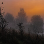 Pierwsze promienie wschodzącego nieśmiało przebijają się przez gęste zasłony mgieł, zabarwiając wszystko ciepłą poświatą.
