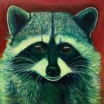 Unikatowy obraz szopa pracza namalowany ręcznie akrylami na płótnie przez Tpsy Painter (tpsypainter.pl).