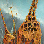„Tam gdzie rosną żyrafie” – olej na płycie pilśniowej (gruntowanej gesso), wykończony werniksem olejowo żywicznym.