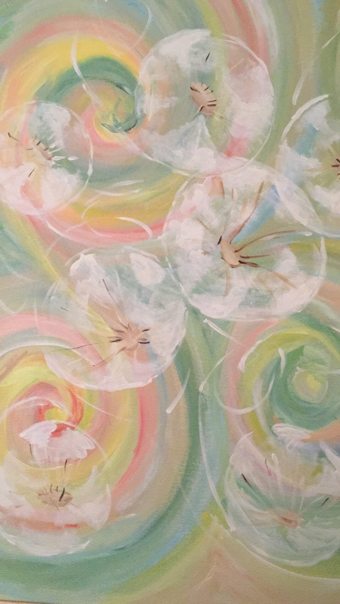 Słowa kluczowe, pastele, dmuchawce, taniec, abstrakcja, dziecko,