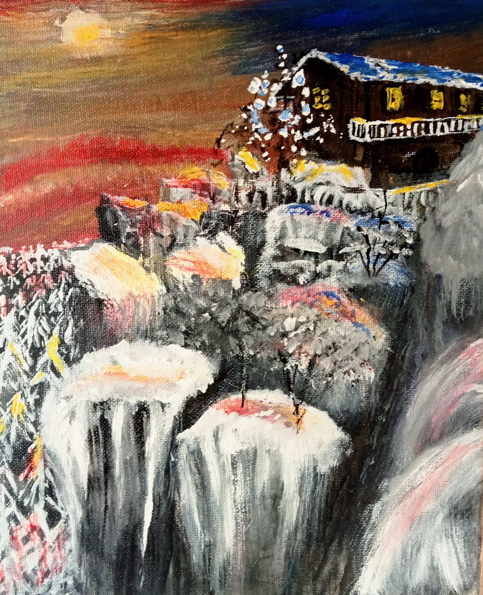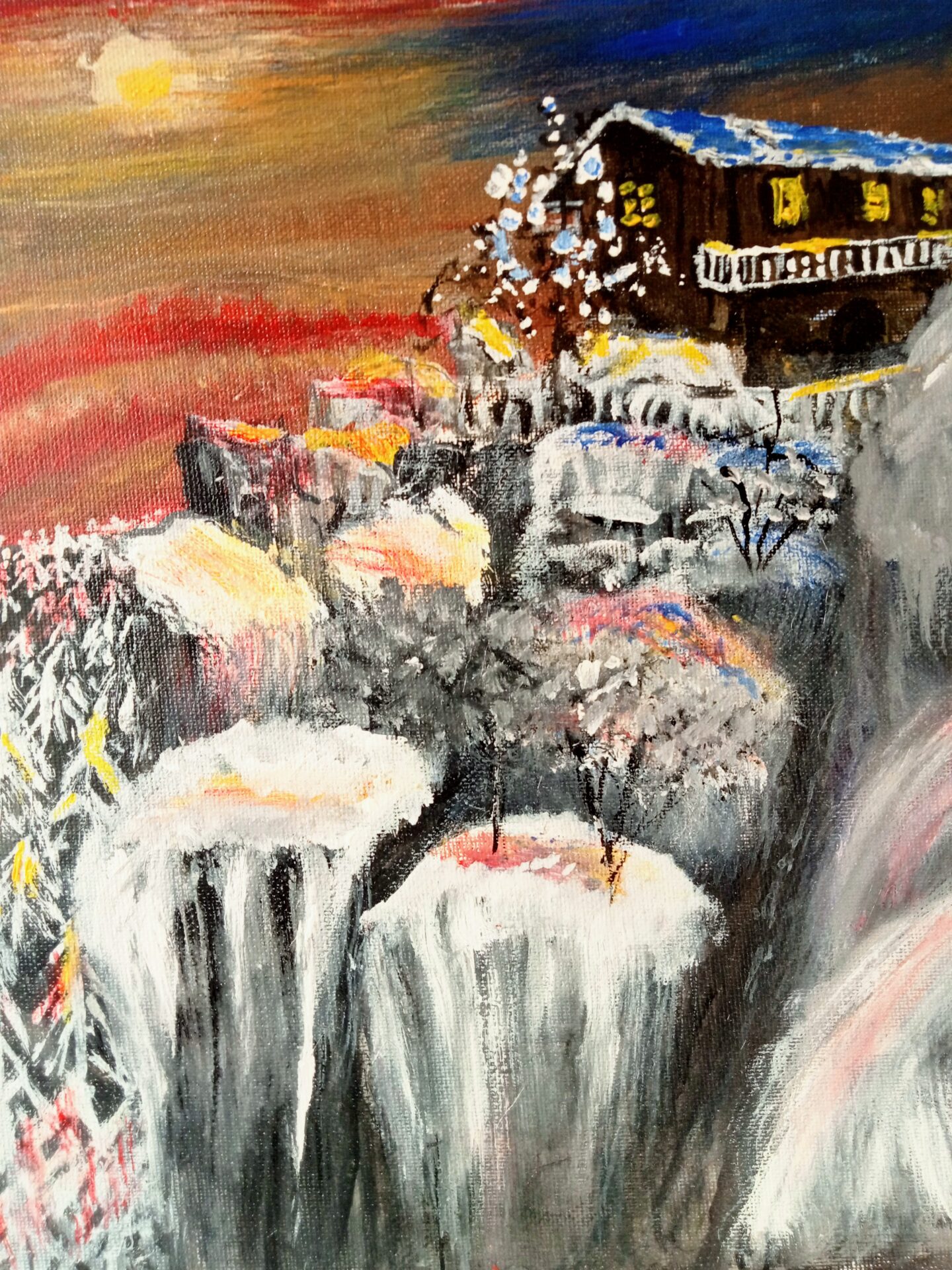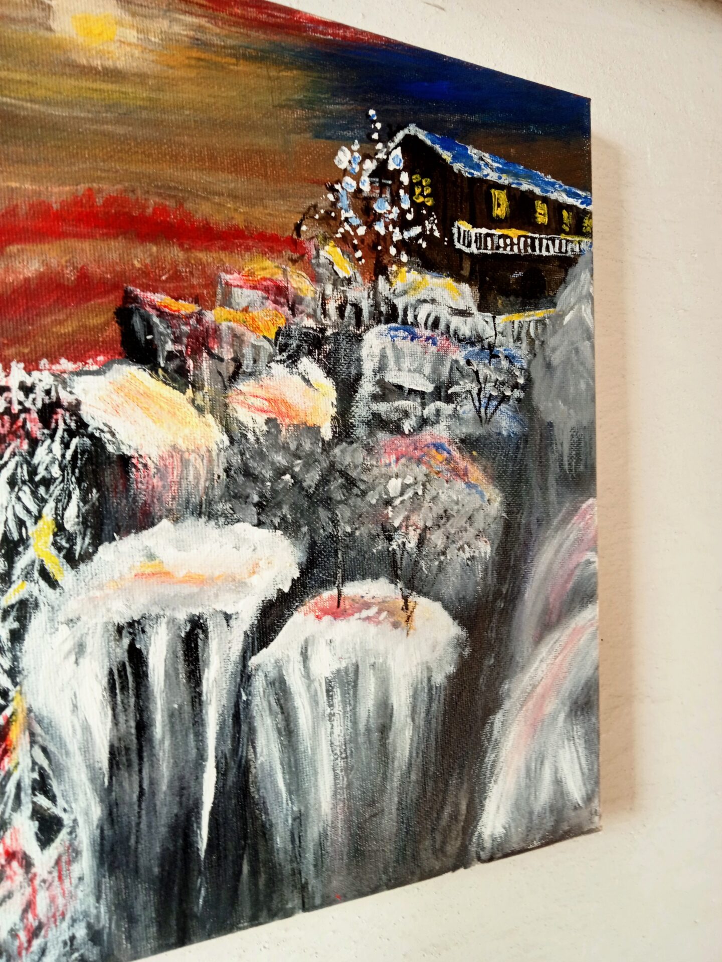 Obraz akrylowy ręcznie malowany na płótnie naciągniętym na bjetram drewniany.