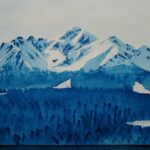 Praca wykonana farbami akwarelowymi na papierze do akwareli, sygnowana ołówkiem na odwrocie. Wykonana podczas wyjazdu narciarskiego przedstawia zimowy pejzaż górski w promieniach słonecznych. Punkt widzenia : Jurgów na polskim Spiszu, obraz przedstawia łańcuch Tatr Bielskich po słowackiej stronie.