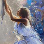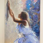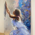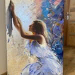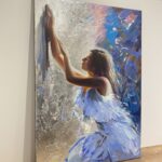 • Obraz malowany farbami olejnymi na płótnie bawełnianym z dodatkiem płatków srebra, o wymiarze 100x70cm, rok wykonania 2024.