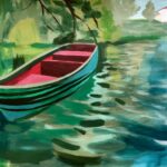Dzieło przedstawia zieloną lutownicę, w przemyślany sposób ustawioną na niebieskiej tkaninie. Tło zakomponowane zostało z jednolitych plam koloru, które tworzą wyraźną strukturę, układając się w całość i dopasowując się do siebie nawzajem. Obraz malowany na wysokojakościowym płótnie włoskim w technice farb akrylowych. Geometryczny i wielobarwny wyraz dzieła, sprawia, że doskonale wpisuje się ono w nowoczesne, minimalistyczne wnętrze. Obraz bezramowy. Oryginał. Dokument autentyczności wydany przez artystę.
