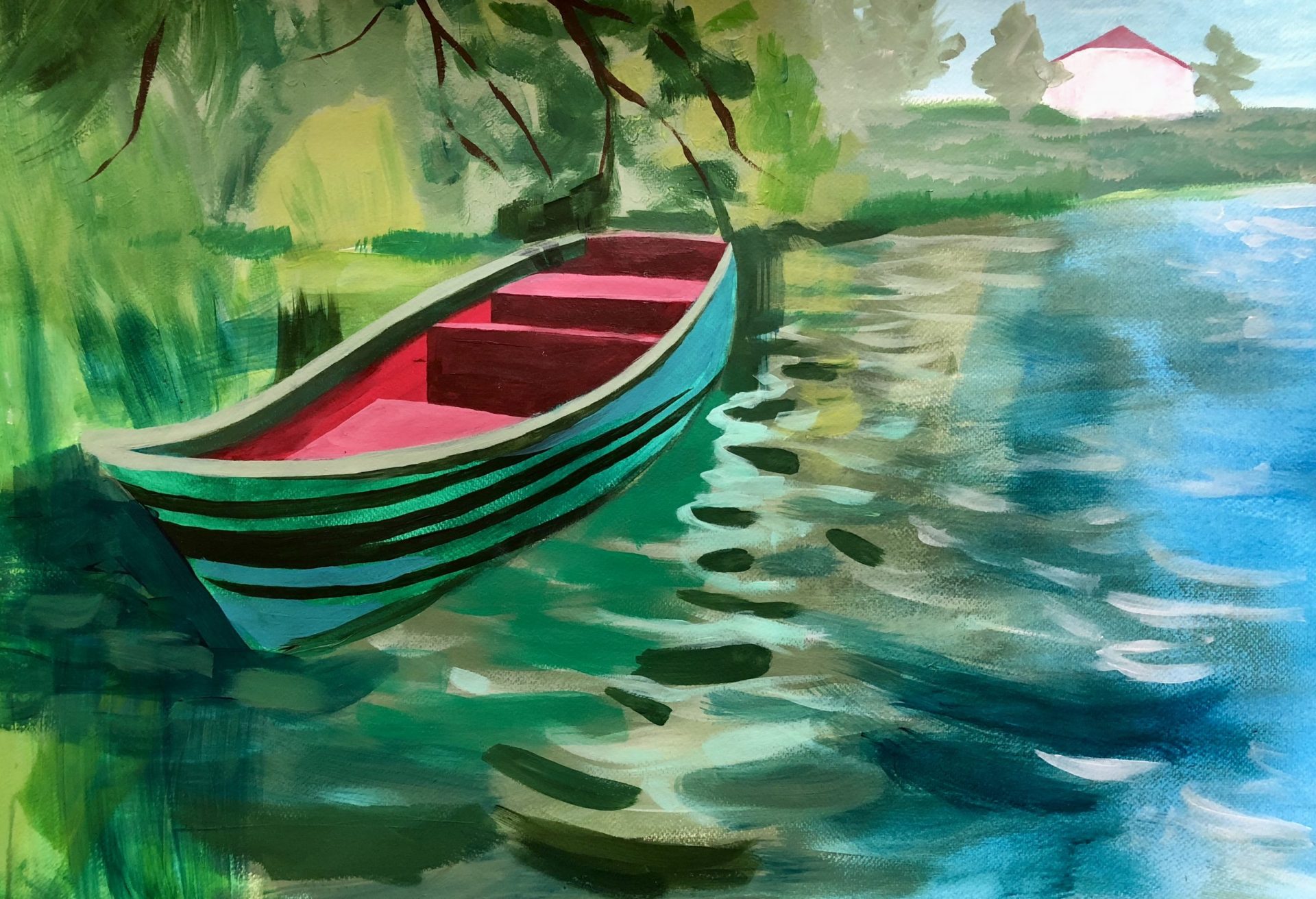 Dzieło przedstawia zieloną lutownicę, w przemyślany sposób ustawioną na niebieskiej tkaninie. Tło zakomponowane zostało z jednolitych plam koloru, które tworzą wyraźną strukturę, układając się w całość i dopasowując się do siebie nawzajem. Obraz malowany na wysokojakościowym płótnie włoskim w technice farb akrylowych. Geometryczny i wielobarwny wyraz dzieła, sprawia, że doskonale wpisuje się ono w nowoczesne, minimalistyczne wnętrze. Obraz bezramowy. Oryginał. Dokument autentyczności wydany przez artystę.