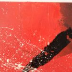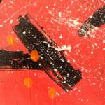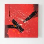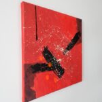 Informacje podstawowe: akryl na płótnie bawełnianym (gruntowanym)30×30 cm. Barwy: czerwień, biel, czerń i pomarańcz. Boki czerwone.