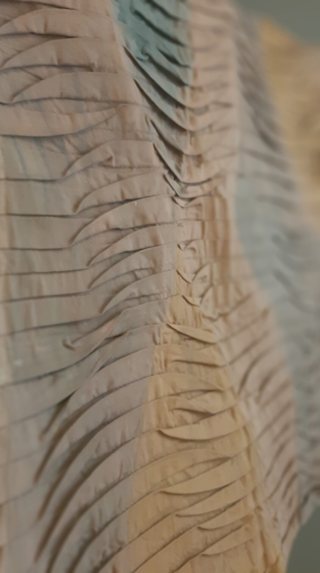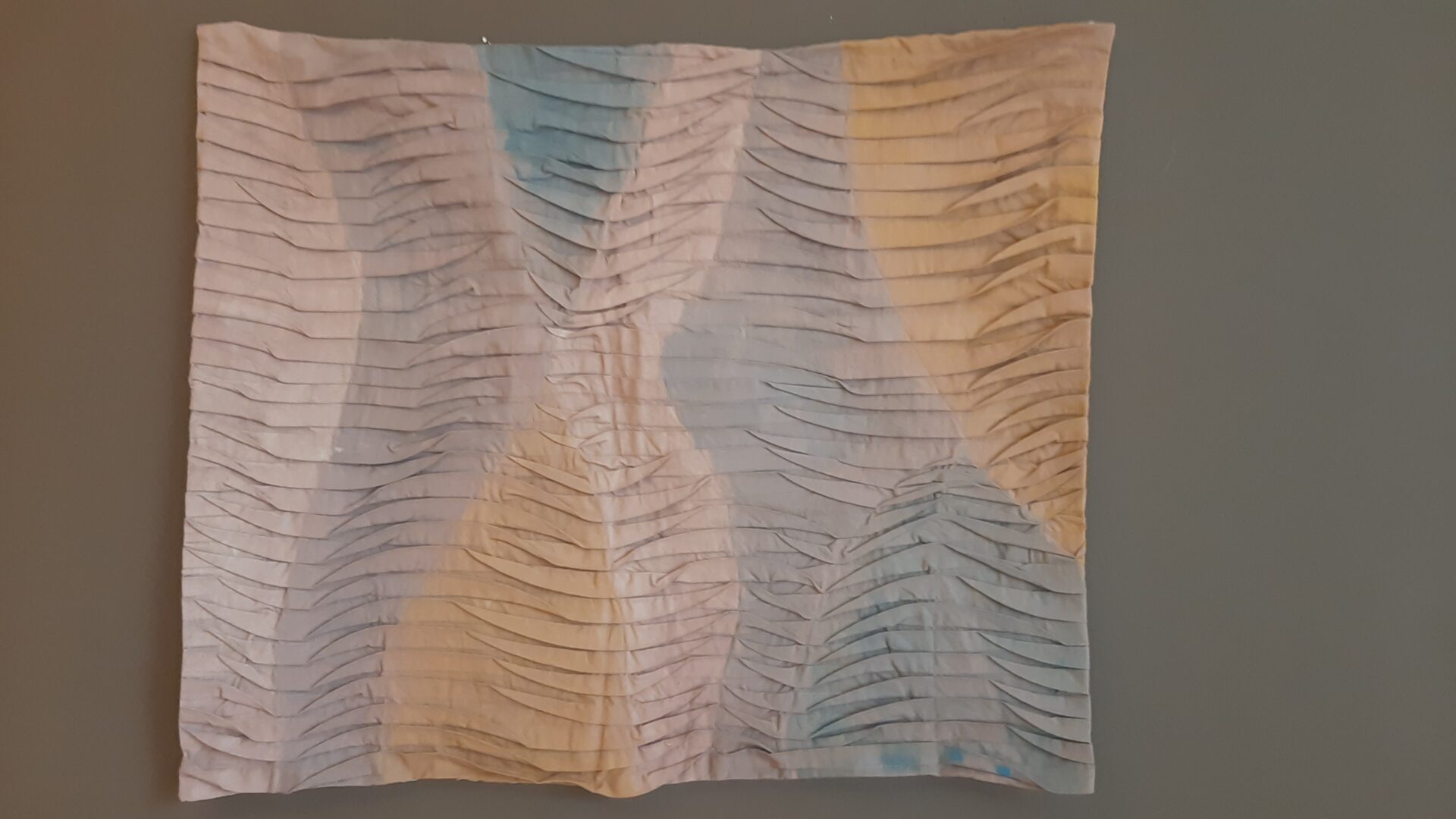 Tkanina artystyczna na ścianę, abstrakcja, naturalny materiał, kolory jesieni. Idealna na ścianę do salonu, sypialni lub holu.