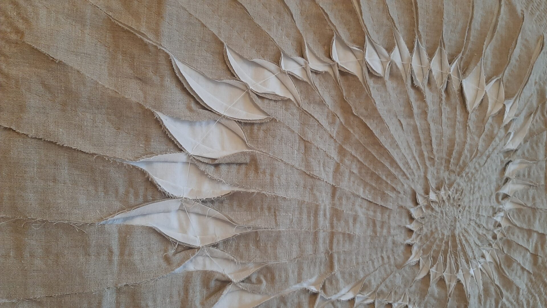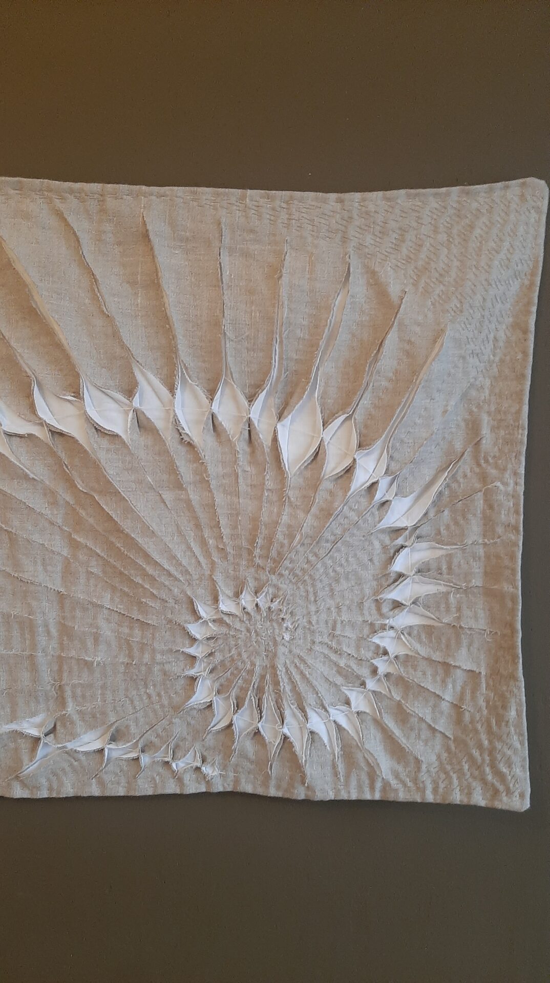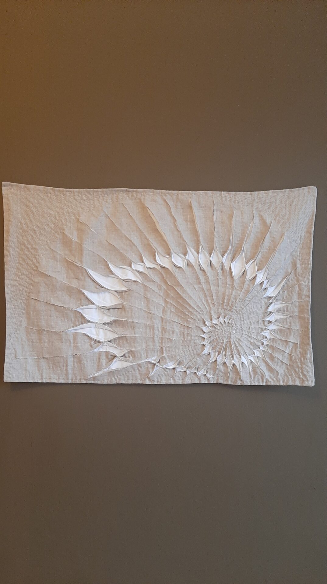 Tkanina artystyczna ręcznie wykonana, lniana tkanina, minimalistyczny wzór. Idealnie pasuje do salonu, sypialni lub holu.