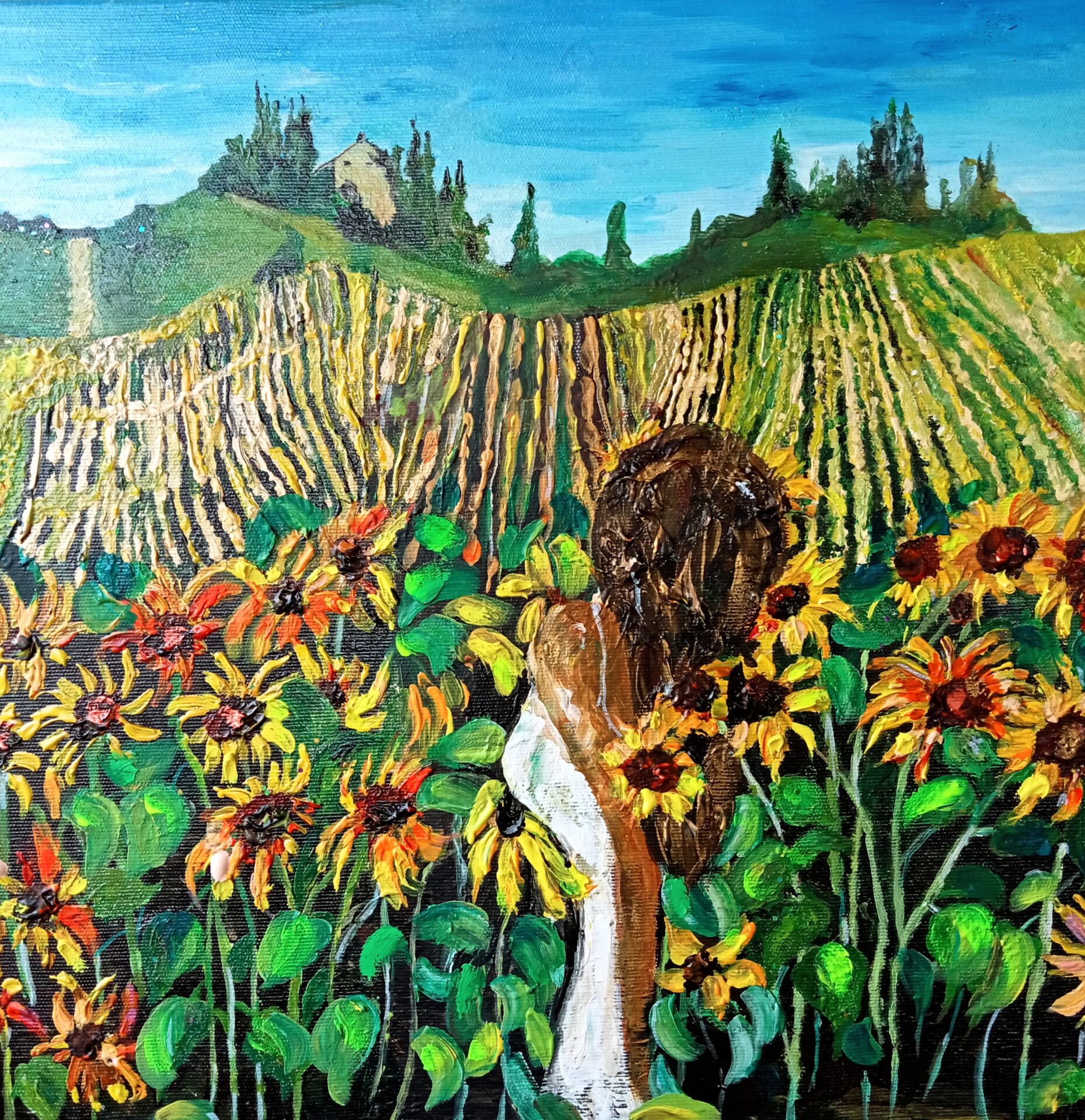 Obraz akrylowy ręcznie malowany na płótnie naciągniętym na bjetram drewniany.