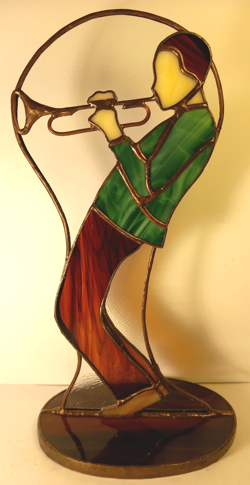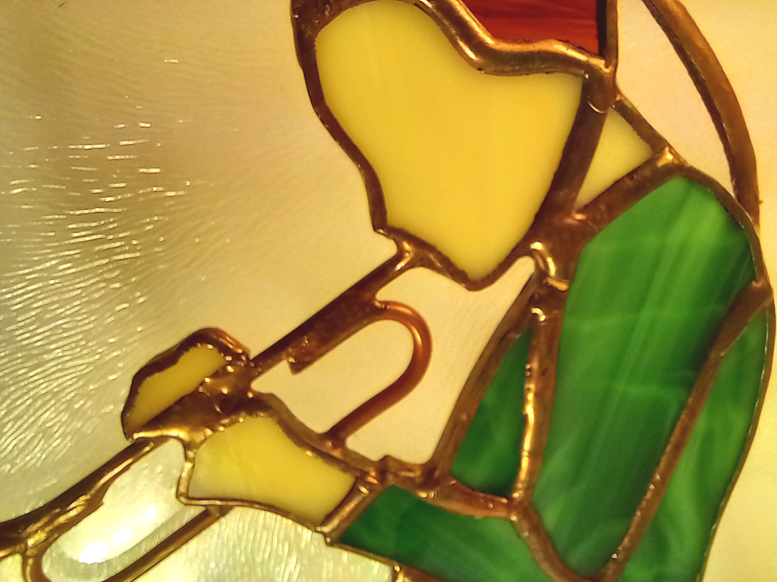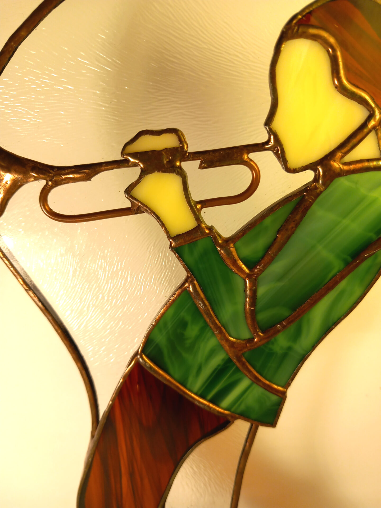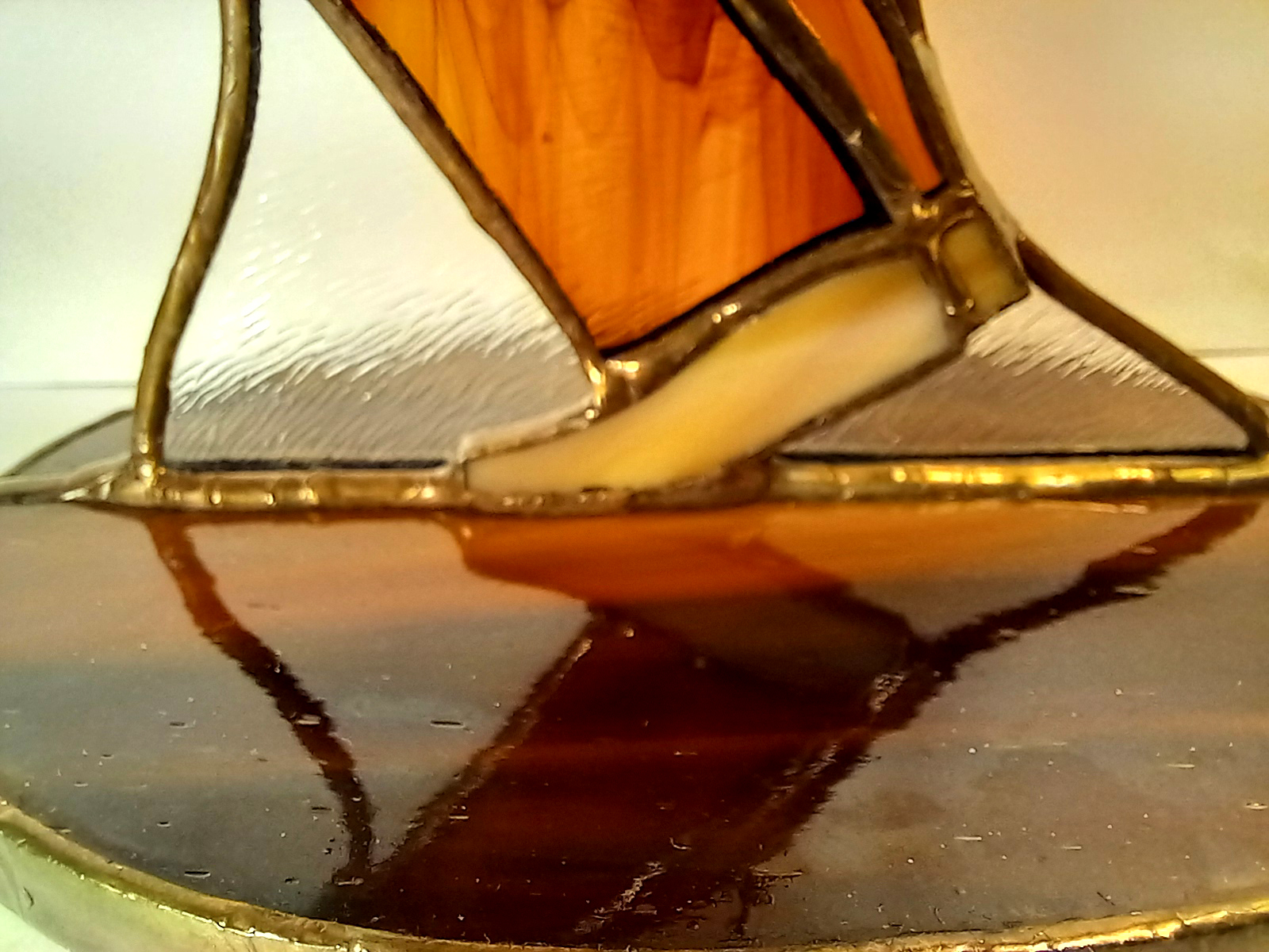 Statuetka ze szkła witrażowego i metalu wykonana w stu procentach ręcznie techniką tiffany.