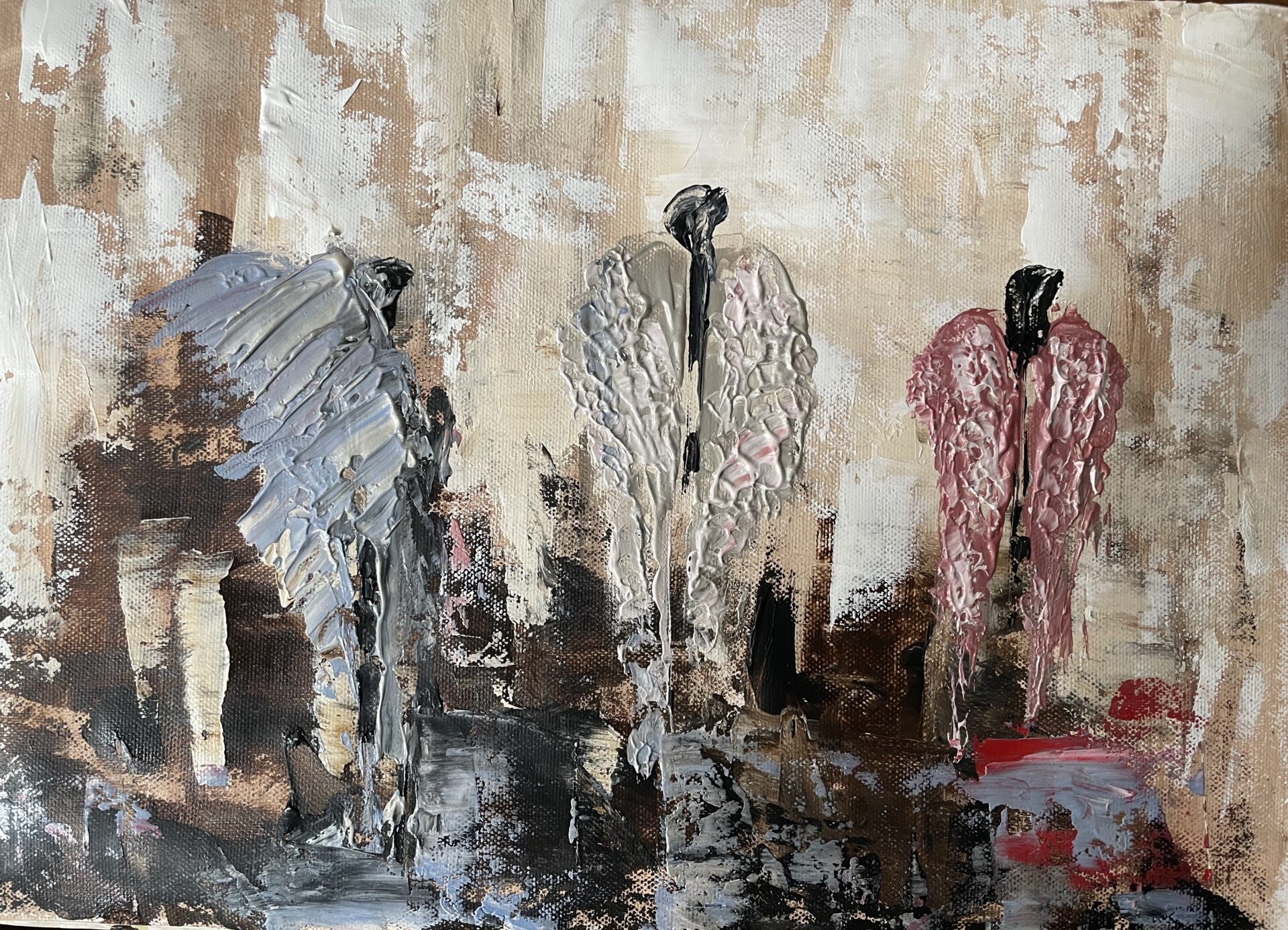 Słowa kluczowe: anioł, beż, błękit, czerwień, miłość, otucha, przyjaźń, abstrakcja, nadzieja, emocje.
