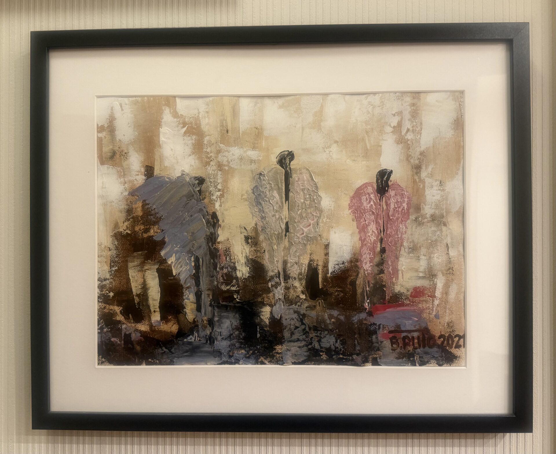 Obraz namalowany akrylem na płótnie, umieszczony w ramie z passe-partout pod chroniącą folią. Cena uwzględnia ramę uwidoczniona na zdjęciu.