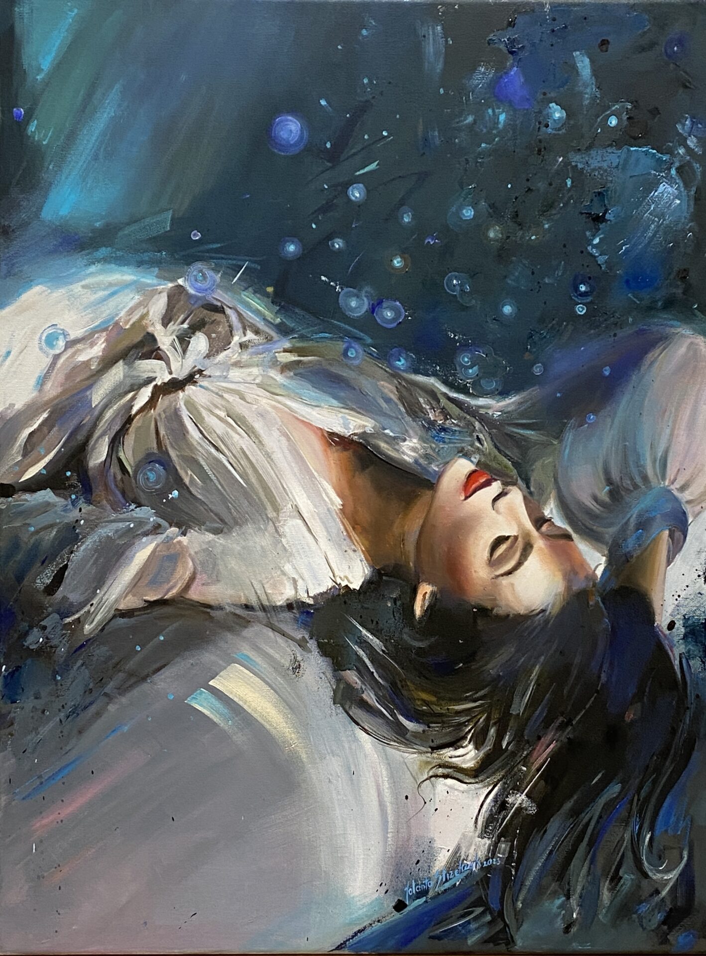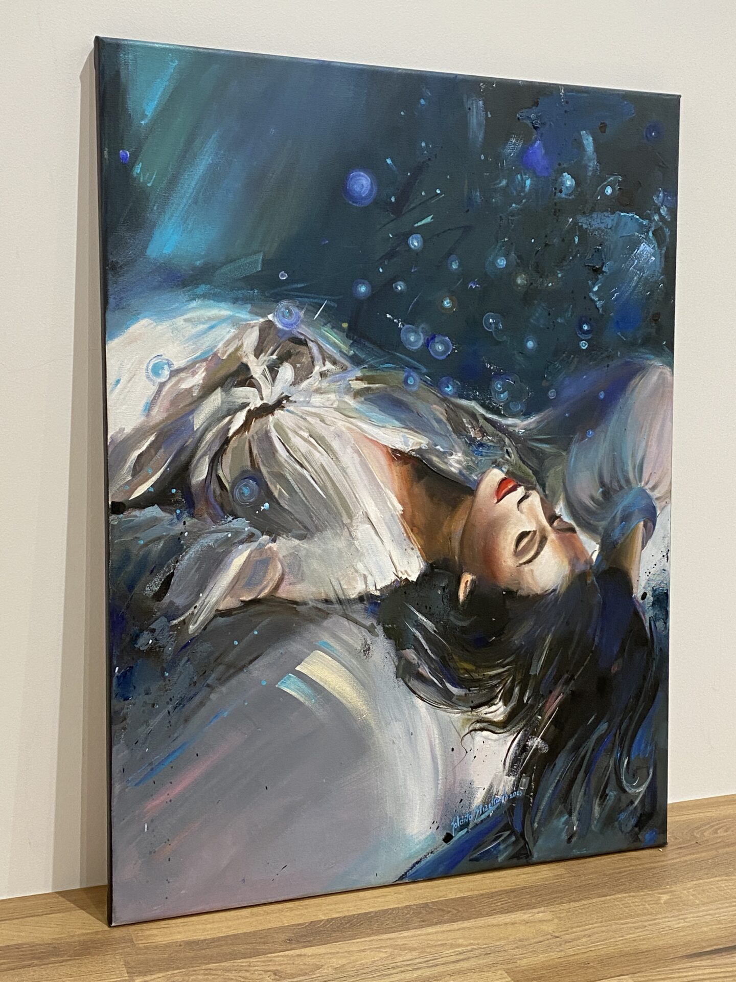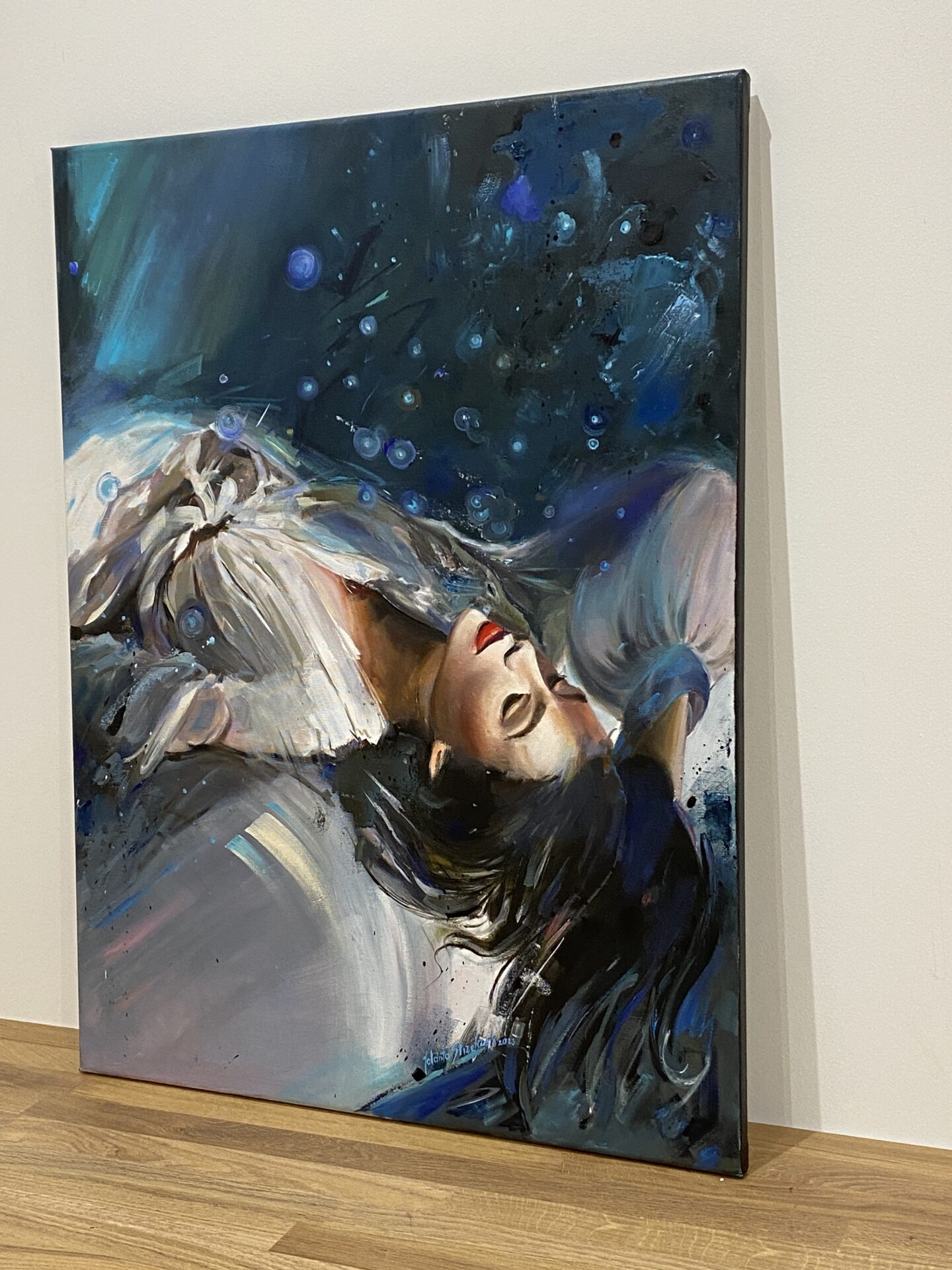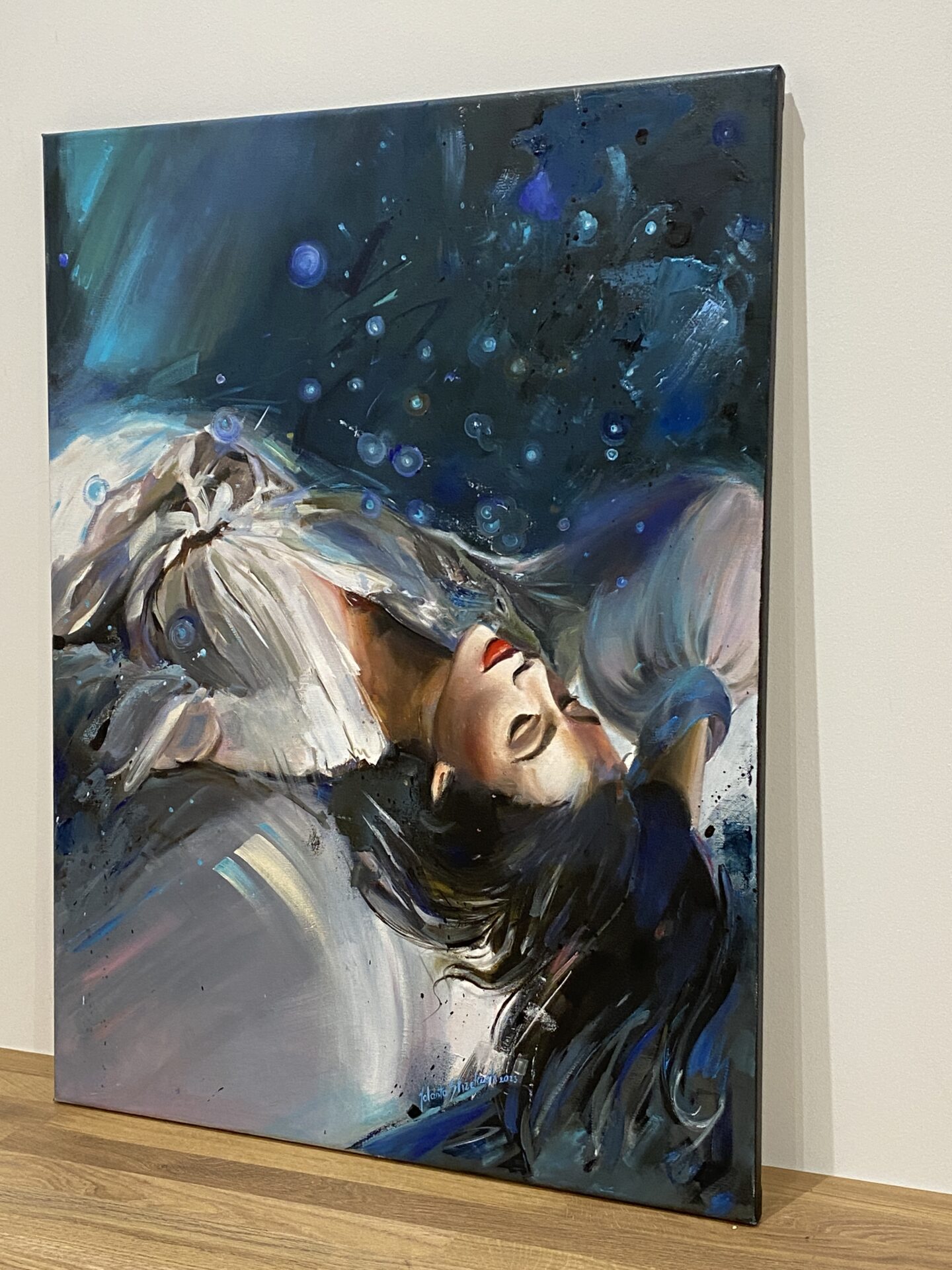 Obraz malowany wysokiej jakości farbami olejnymi na płótnie bawełnianym o wymiarze 80x60cm, rok wykonania 2023.