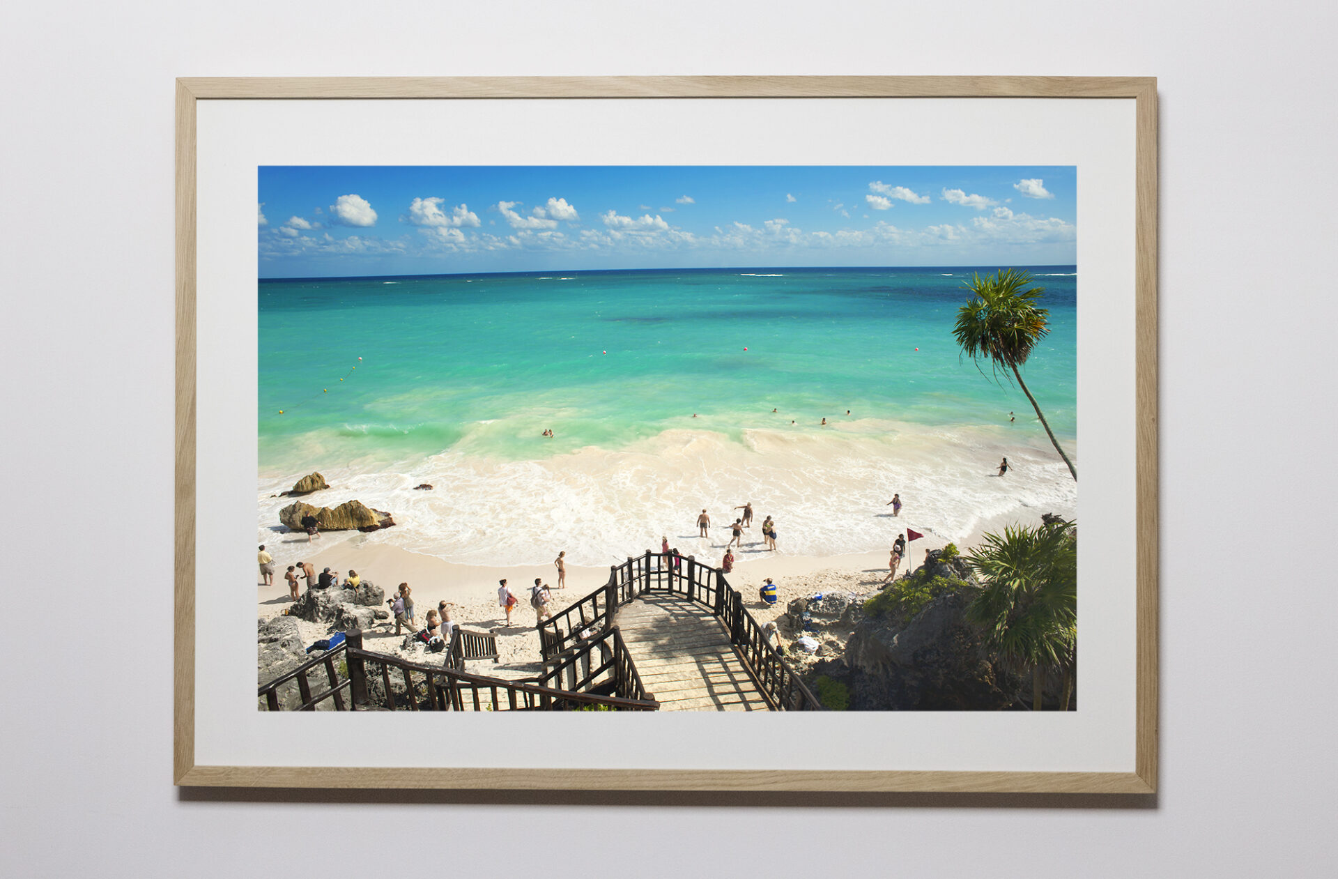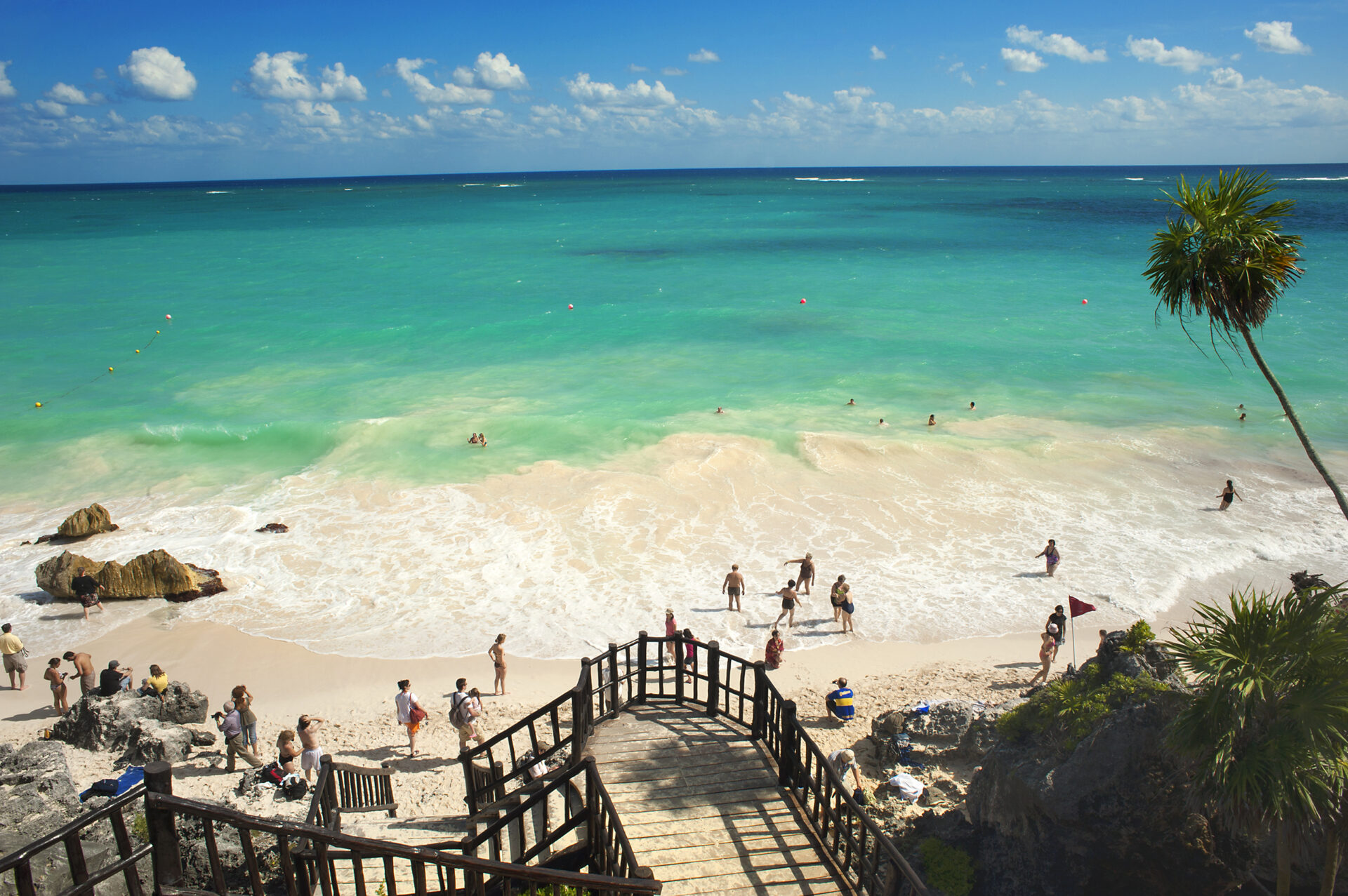 Tulum’s wide, pearly – white sandy beach with a crystal clear Caribbean waters, Tulum Mexico.