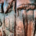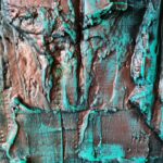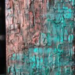 Witam, obraz strukturalny (technika własna,wyrażna faktura))namalowany farbami akrylowymi na płycie MDF, zabezpieczony podwójną warstwą lakieru,kolory to odcienie miedzi i turkusu