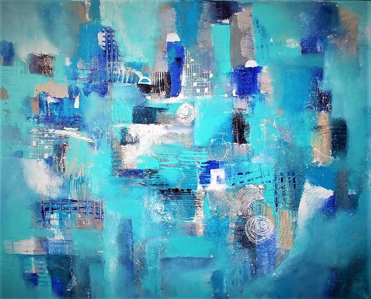 Tysiące uciekających stateczków w tej ” Turkusowej rapsodii ” . Dokąd zdążają nie wie nikt. ..wiedzie je tajemny głos i światła niezwykłej latarni i dalej i dalej od piekła na ziemi….Obraz w kolorze turkusu i niebieskości zaraża dobrą energią. Gotowy do zawieszenia, ma zamalowane boki. Malowany na włoskim bawełnianym płótnie 50 x 40 x 3 , tzw 3D. Zabezpieczony damarowym werniksem. Sygnowany z tyłu obrazu pełnym opisem / tytuł, autor, rok powstania 2020 /.