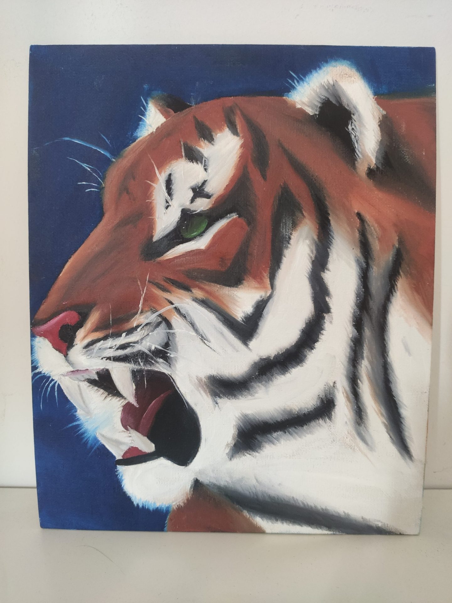Wielkie kły ryczącego tygrysa. Cudownie maluje się piękne zwierzęta.
