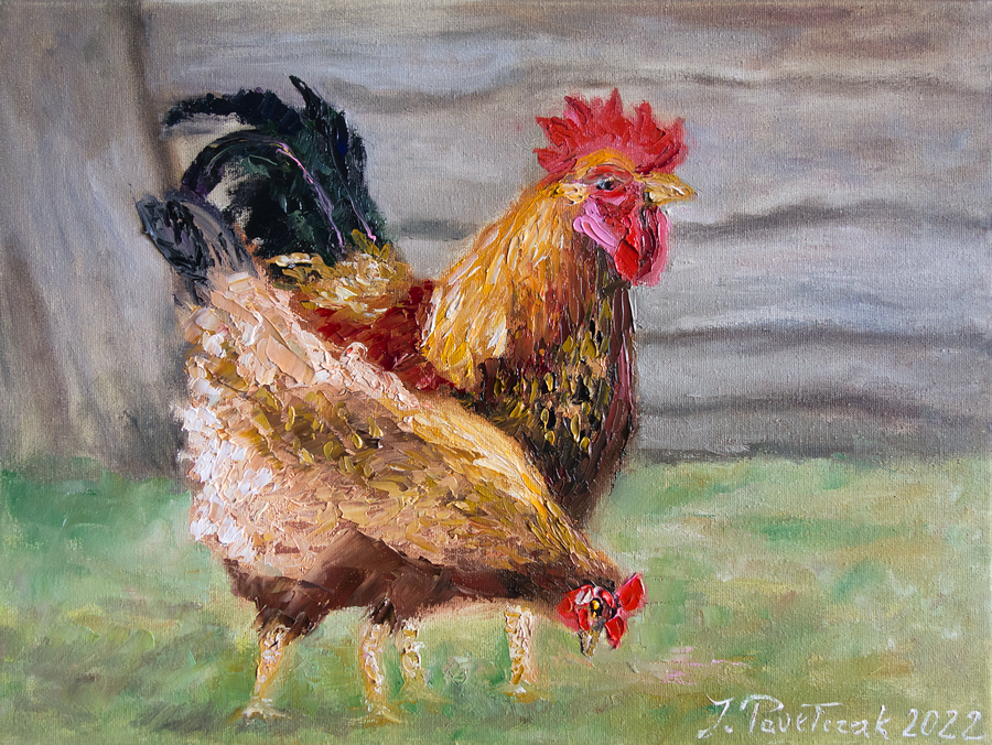 Obraz olejny na podobraziu płóciennym w technice alla prima z widoczną fakturą farby