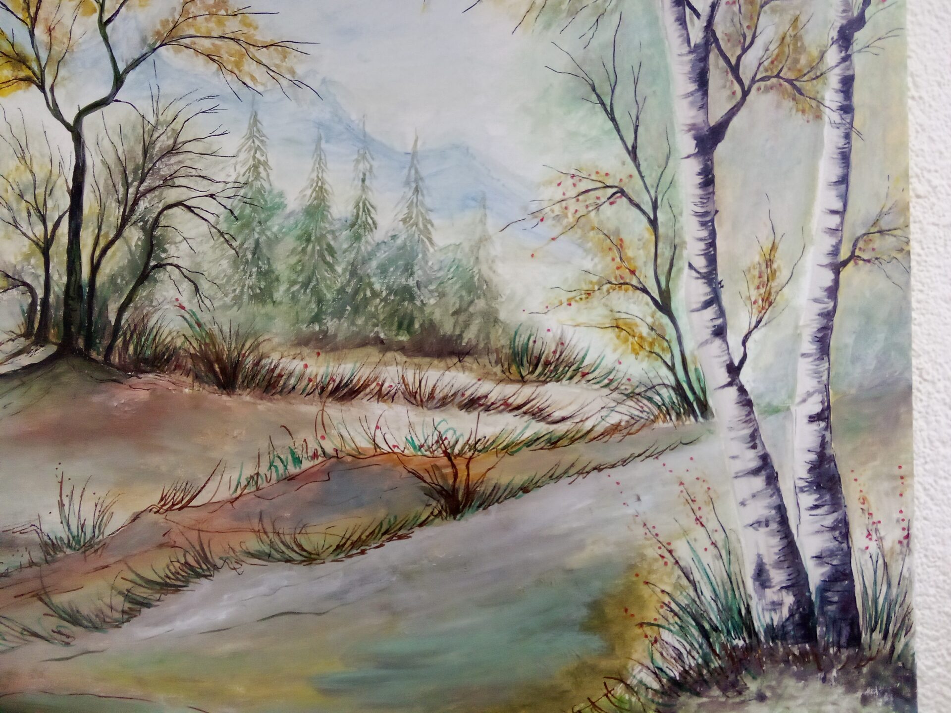 Tchnący spokojem pejzaż dla miłośników natury i brzóz – szczególnie… Ze względu na rozmiar doskonały do salonu lub większego pokoju.