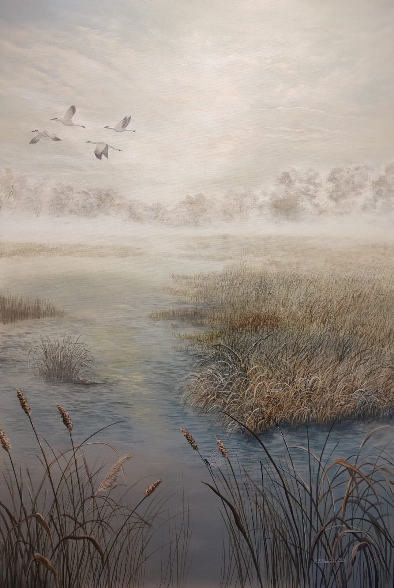 Czwarty obraz z serii „Ukojenie”. Namalowany farbami akrylowymi na podobraziu malarskim pokrytym grubym włoskim płótnem naciągniętym na krosno, wykończony werniksem z połyskiem, sygnowany na awersie i rewersie, boki zamalowane zgodnie z kolorystyką obrazu.